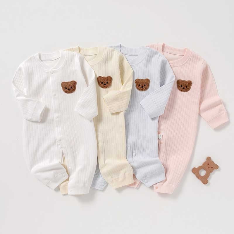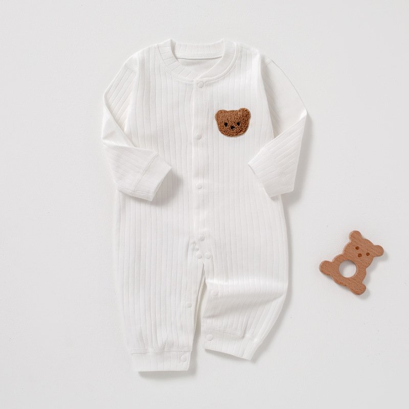 Kids Baby Boys Girls Autumn And Winter Casual Cute Cartoon Bear Pattern Long Sleeve Round Neck Bodysuit