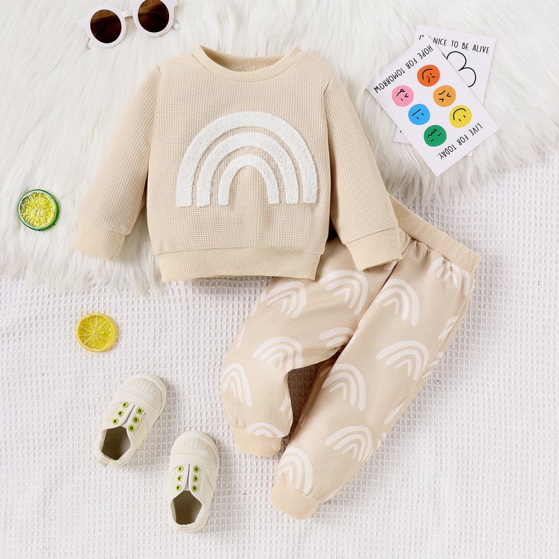 Kids Baby Boys Girls Autumn Winter Casual Cute Basic Waffle Rainbow Long Sleeve Round Neck Sweatshirts Pants Sets