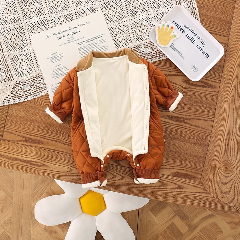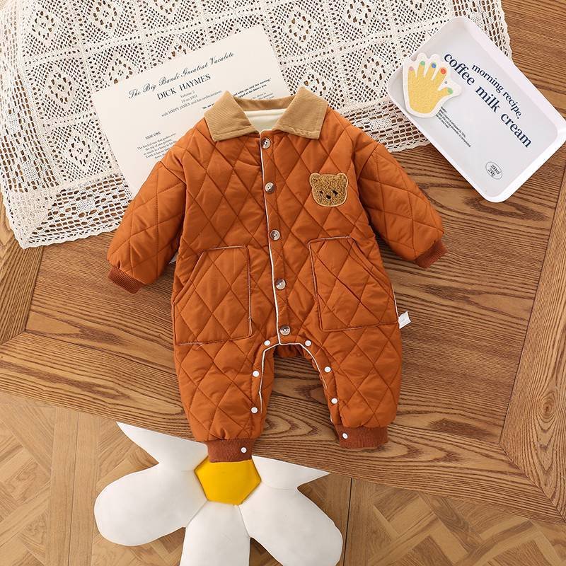 Kids Baby Boys Girls Autumn Winter Casual Cute Bear Fleeces Long Sleeve Lapel Romper