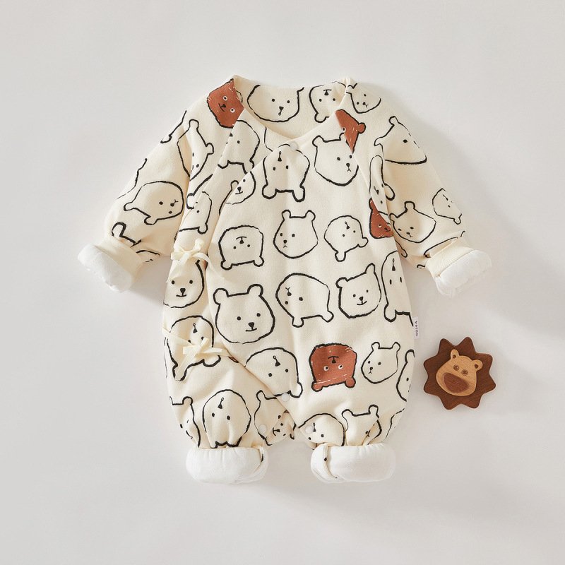 Kids Baby Boys Girls Autumn Winter Casual Cute Cartoon Animal Print Long Sleeve Round Neck Romper