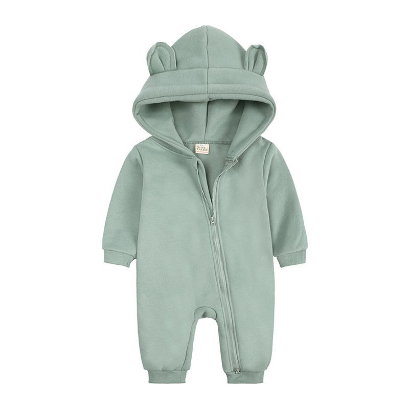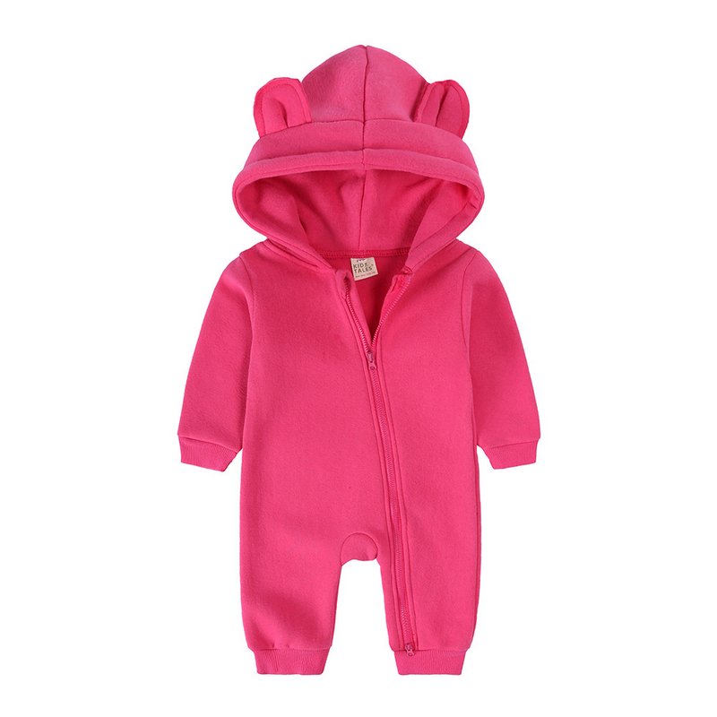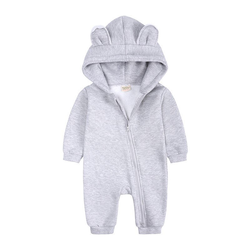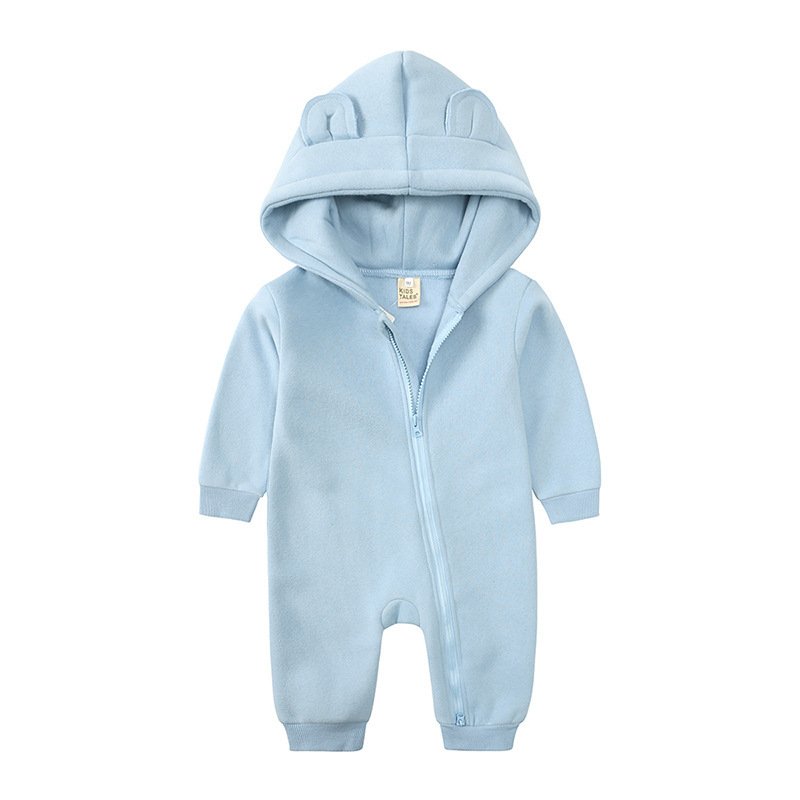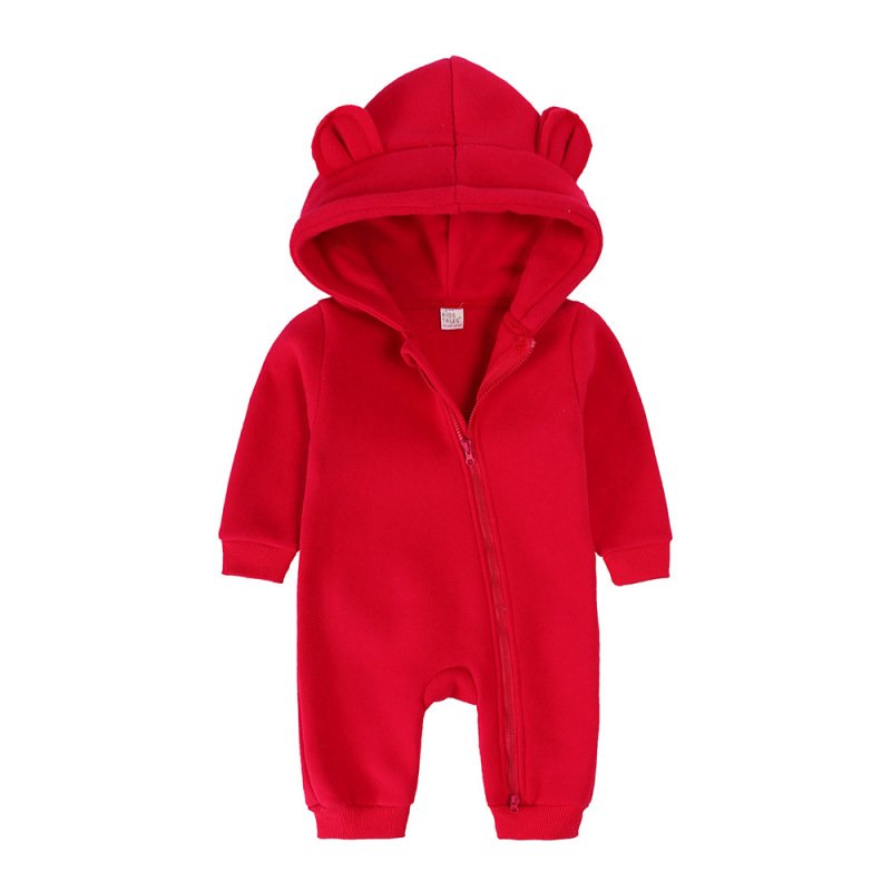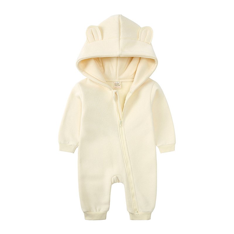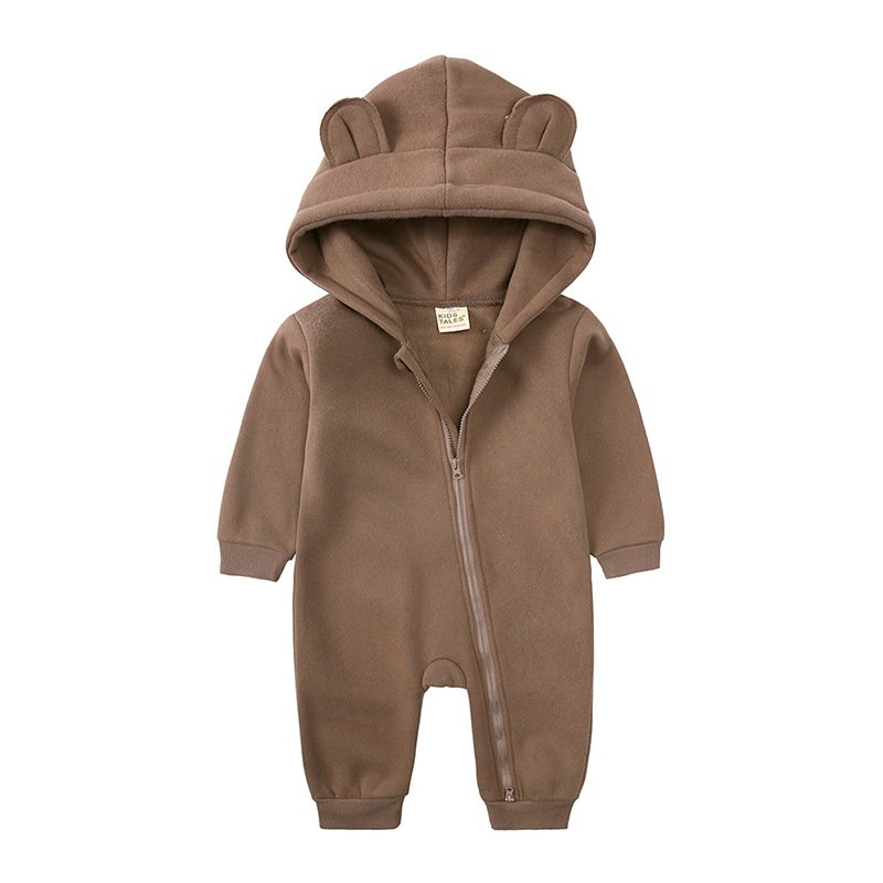 Kids Baby Boys Girls Autumn Winter Casual Cute Solid Color Bear Long Sleeve Hooded Jumpsuit
