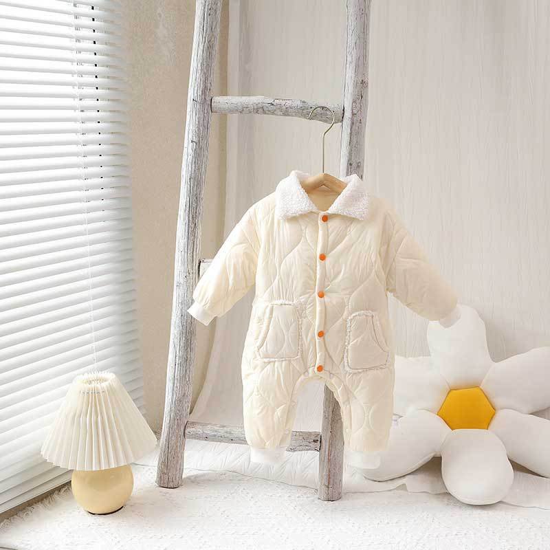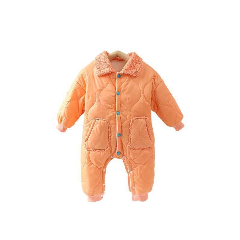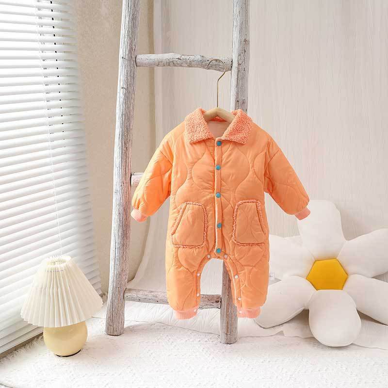 Kids Baby Boys Girls Autumn Winter Casual Cute Solid Color Fleeces Long Sleeve Lapel Romper