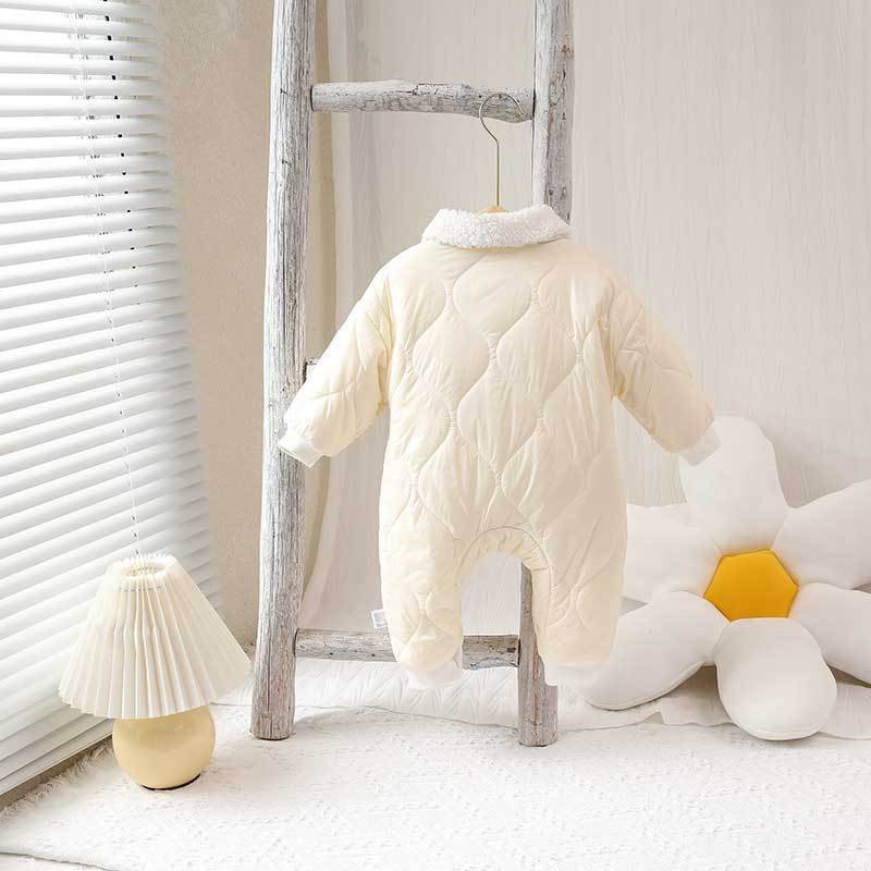 Kids Baby Boys Girls Autumn Winter Casual Cute Solid Color Fleeces Long Sleeve Lapel Romper