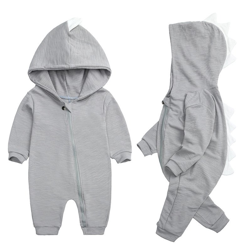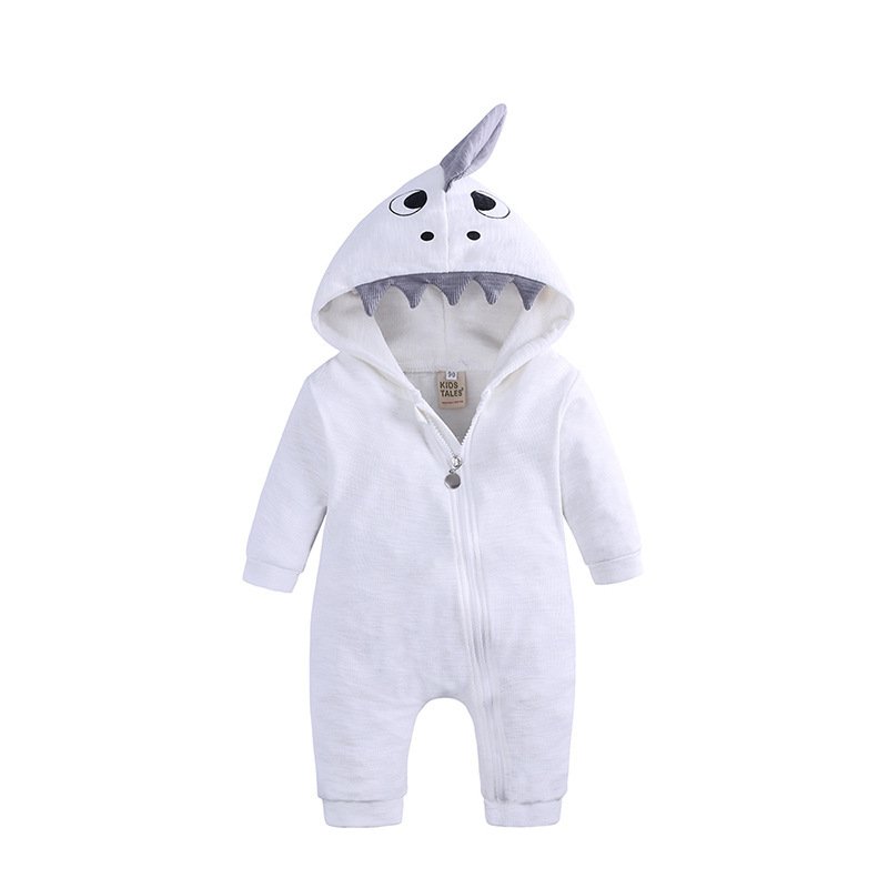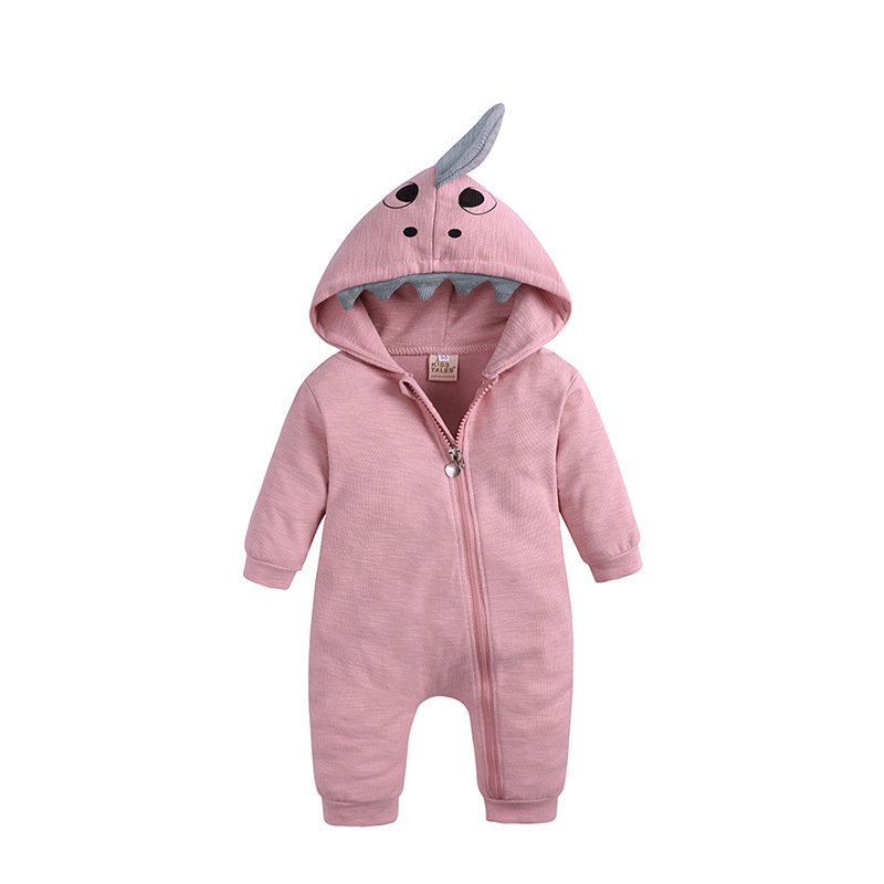 Kids Baby Boys Girls Autumn Winter Casual Cute Solid Color Shark Dinosaur Long Sleeve Hooded Jumpsuit