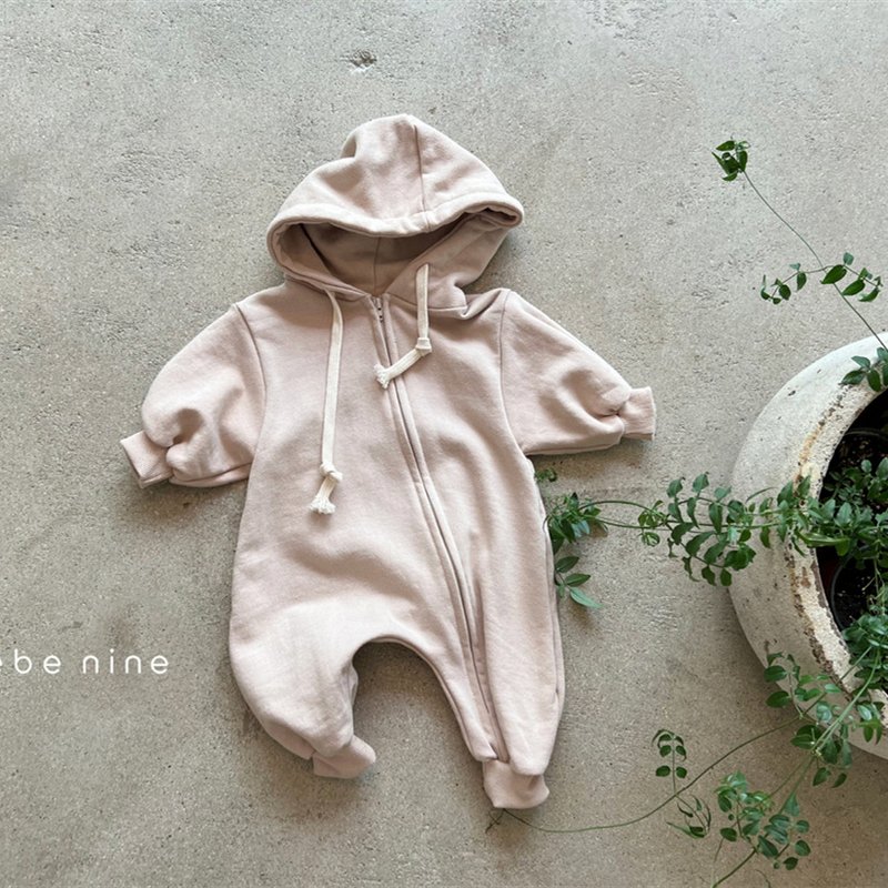 Kids Baby Boys Girls Casual Basic Solid Color Long Sleeve Zipper Hooded Bodysuit
