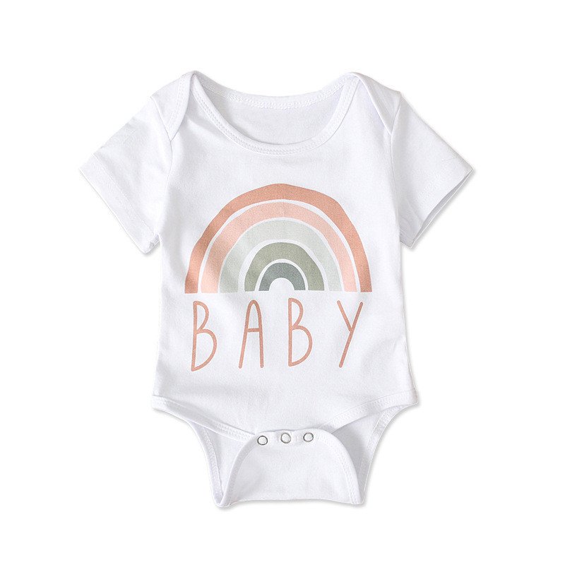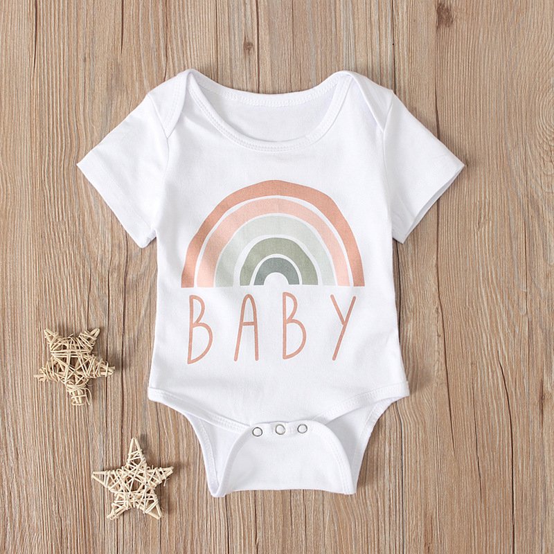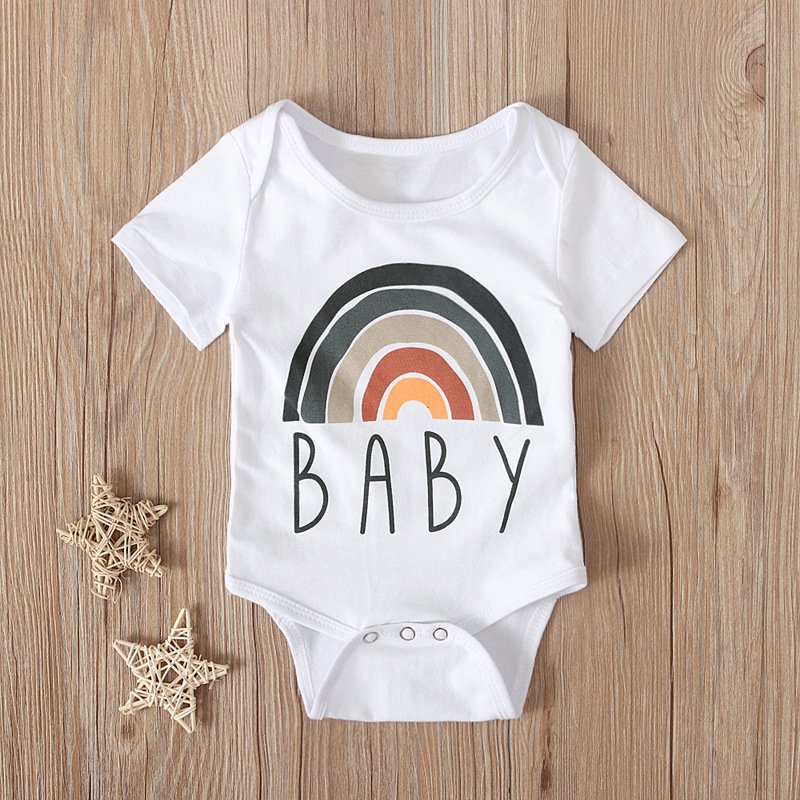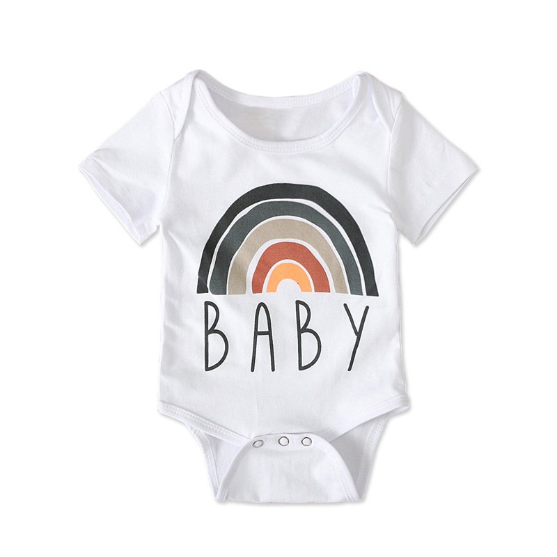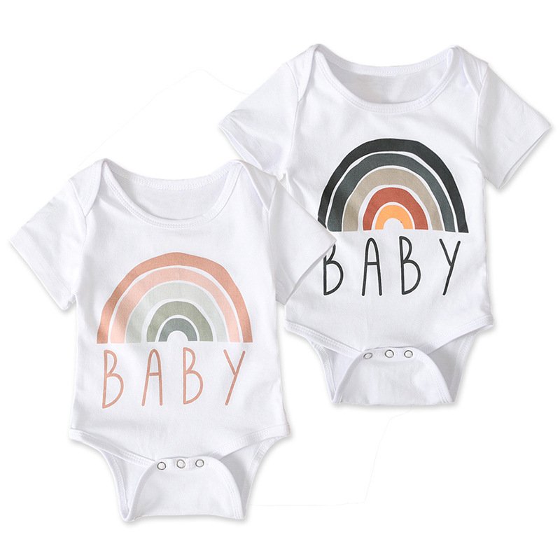 Kids Baby Boys Girls Casual Cute Basic Rainbow Stripe Letter Short Sleeve Round Neck Romper