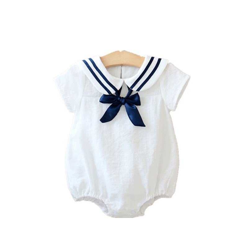 Kids Baby Boys Girls Casual Cute Bow Short Sleeve Peter Pan Collar Romper