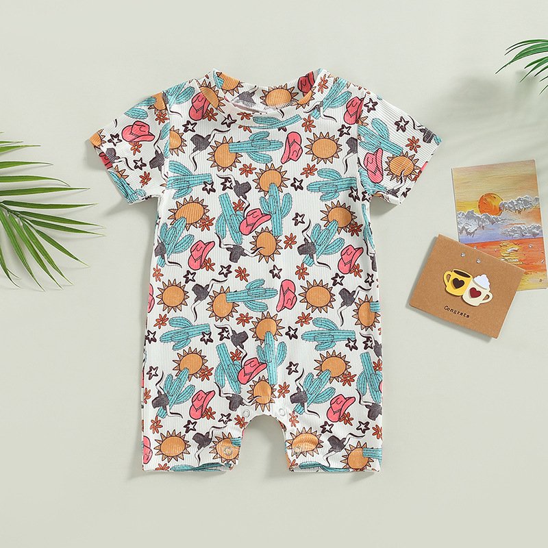 Kids Baby Boys Girls Casual Cute Cactus Sun Print Short Sleeve Round Neck Romper