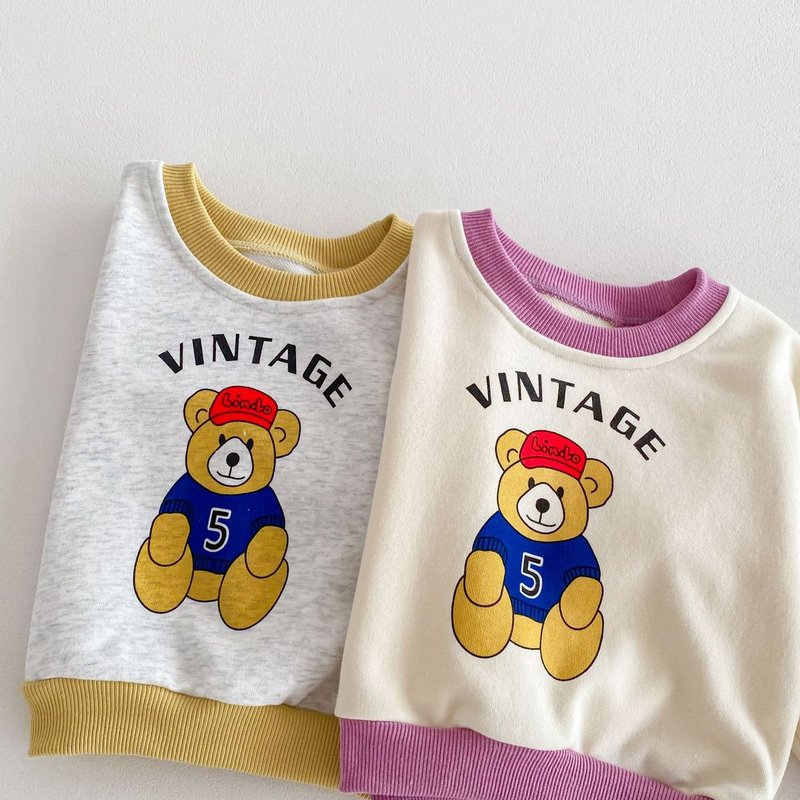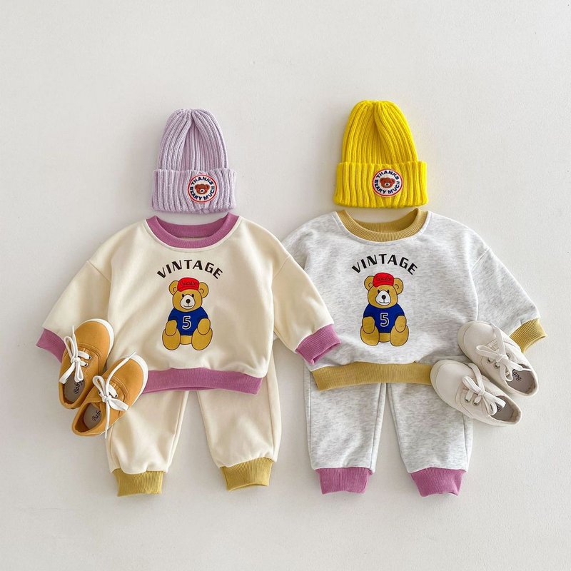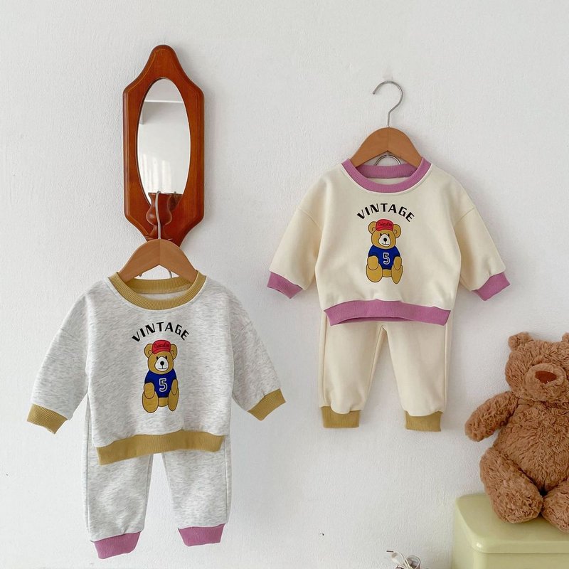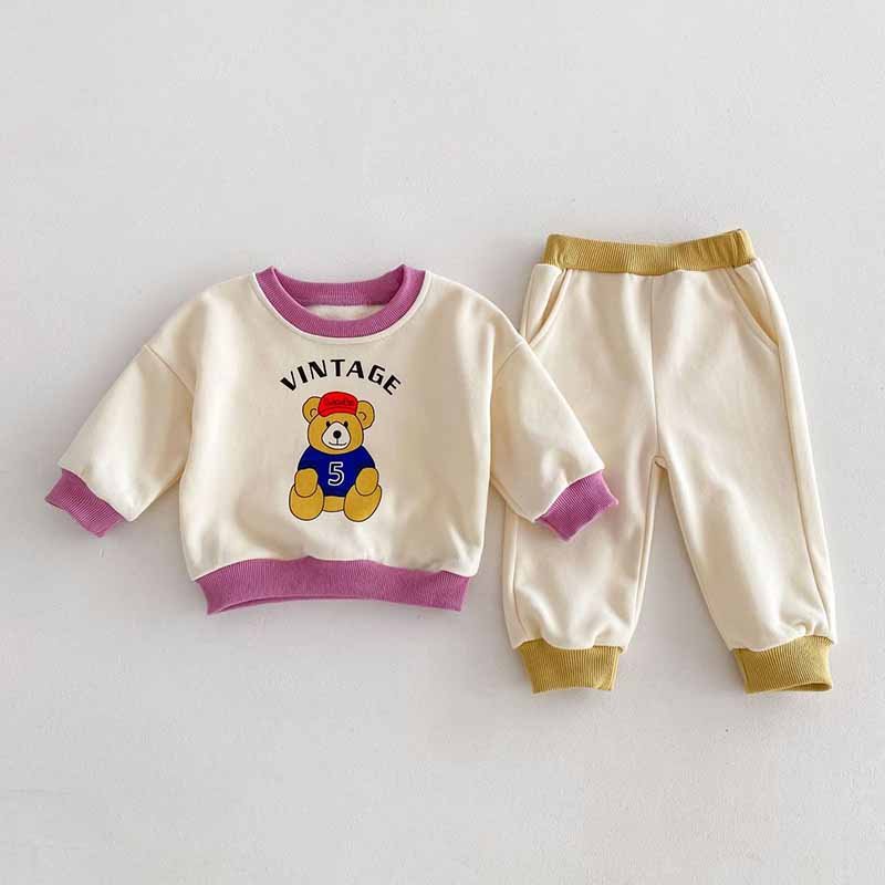 Kids Baby Boys Girls Casual Cute Cartoon Bear Alphabet Print Long Sleeve Sweatshirts Pants Sets