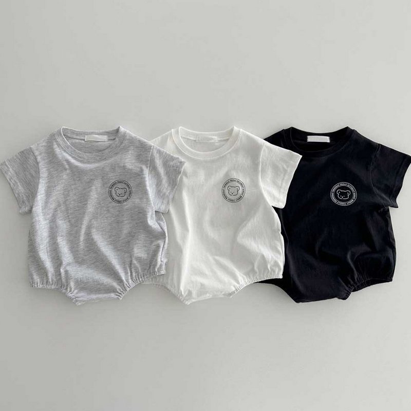Kids Baby Boys Girls Casual Cute Cartoon Bear Print Short Sleeve Romper