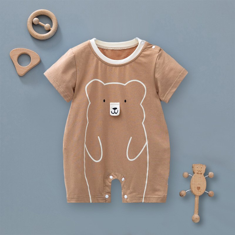 Kids Baby Boys Girls Casual Cute Cartoon Bear Print Short Sleeve Romper