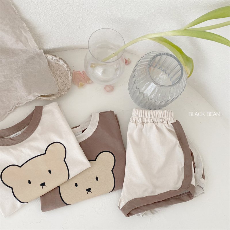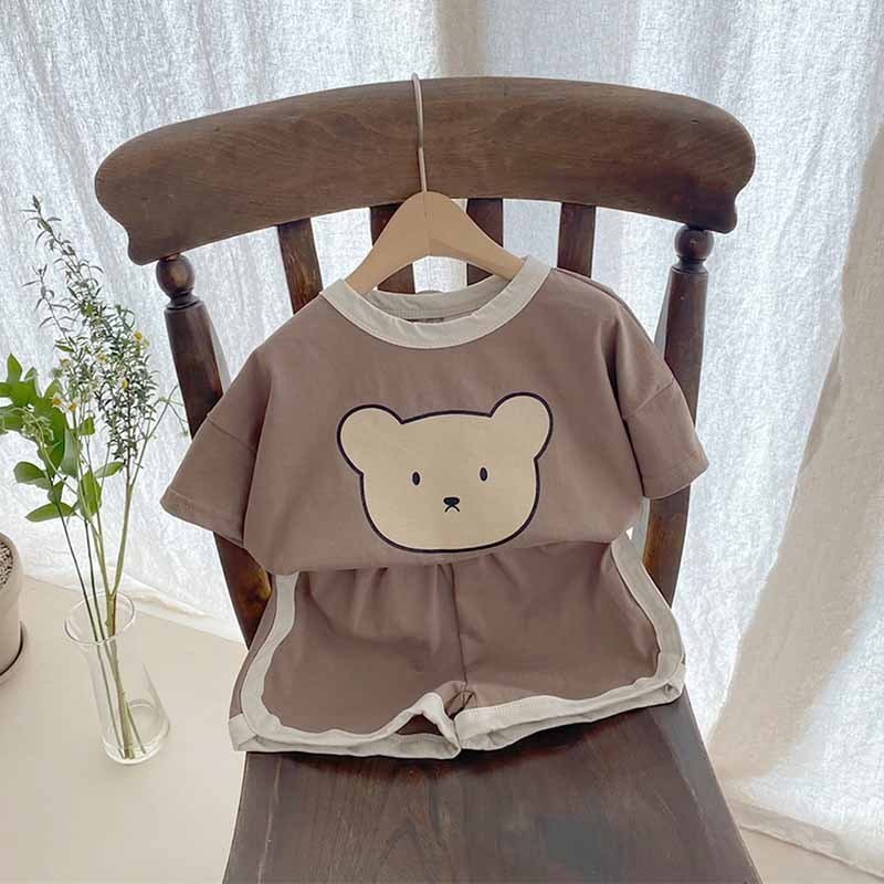 Kids Baby Boys Girls Casual Cute Cartoon Bear Print Short Sleeve Round Neck T-Shirt Shorts Set