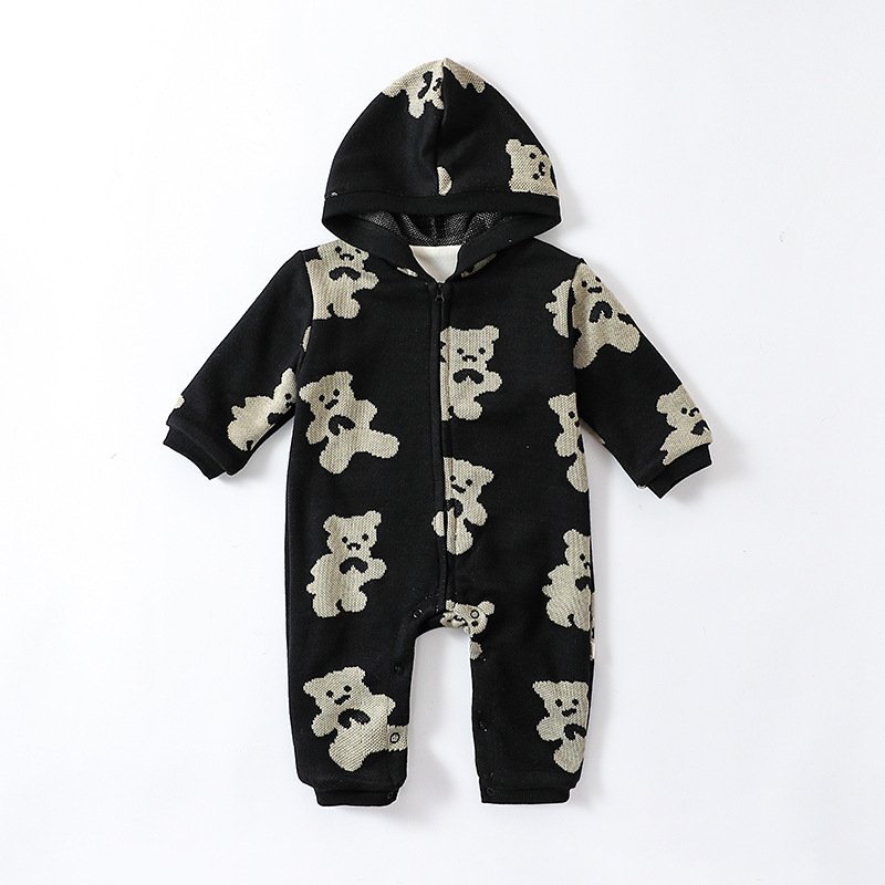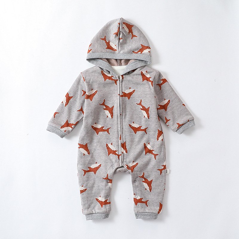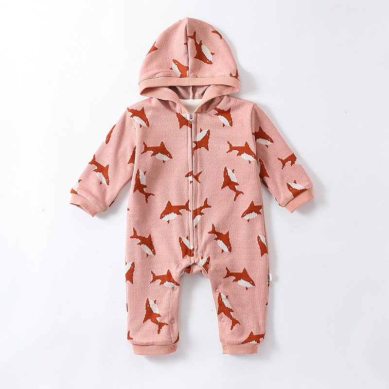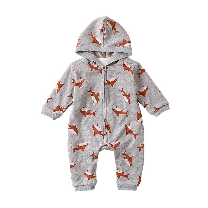 Kids Baby Boys Girls Casual Cute Cartoon Bear Shark Print Long Sleeve Romper