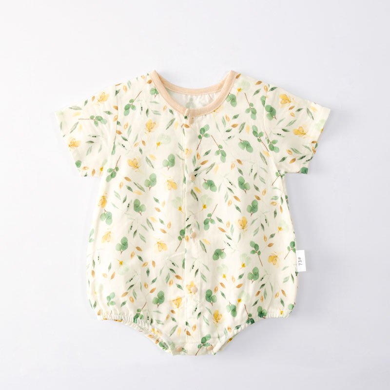 Kids Baby Boys Girls Casual Cute Cartoon Floral Print Short Sleeve Romper