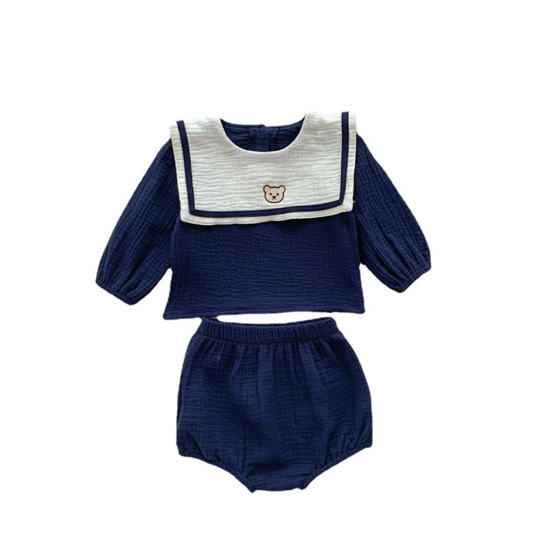 Kids Baby Boys Girls Casual Cute Cartoon Long Sleeve Lapel Shorts Set