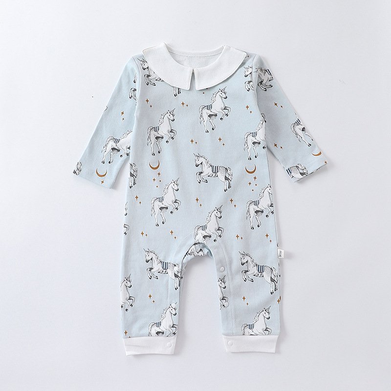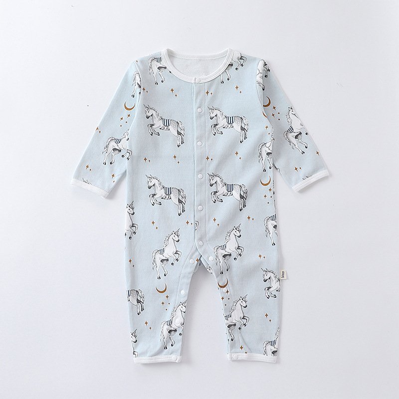 Kids Baby Boys Girls Casual Cute Cartoon Pattern Long Sleeve Round Neck Bodysuit