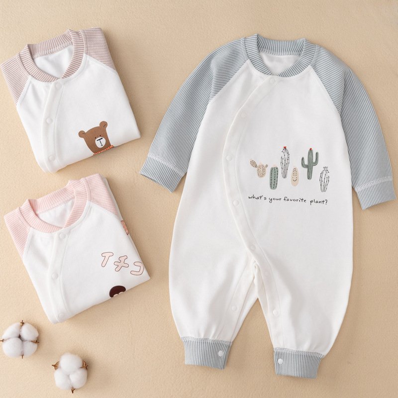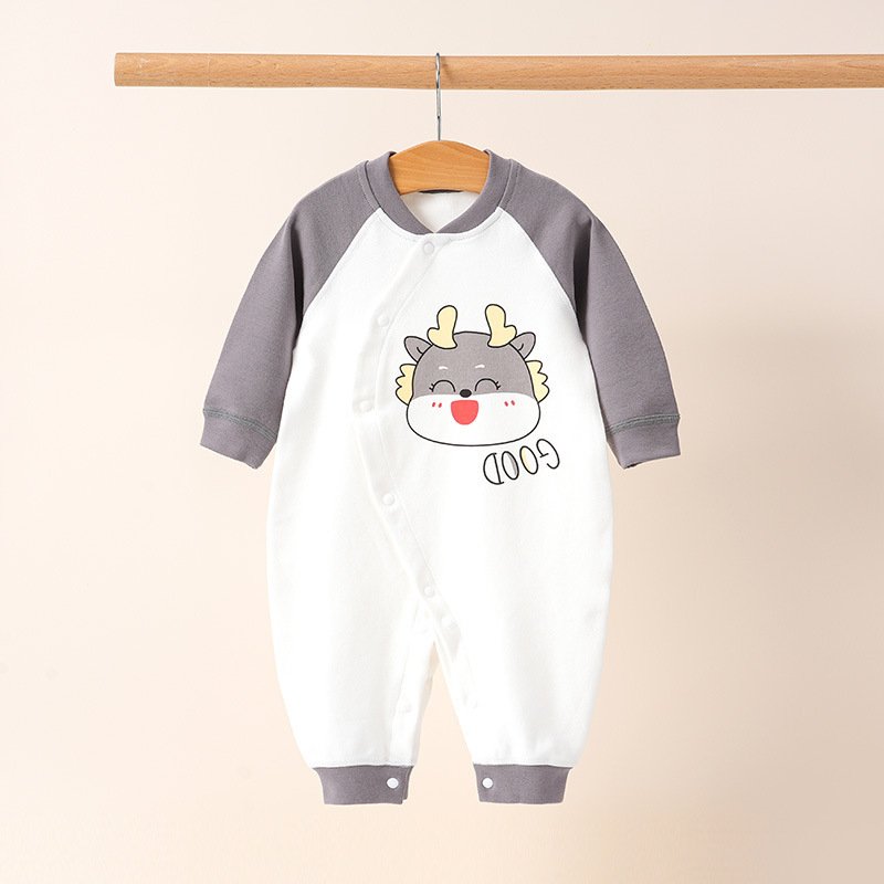 Kids Baby Boys Girls Casual Cute Cartoon Pattern Long Sleeve Round Neck Bodysuit