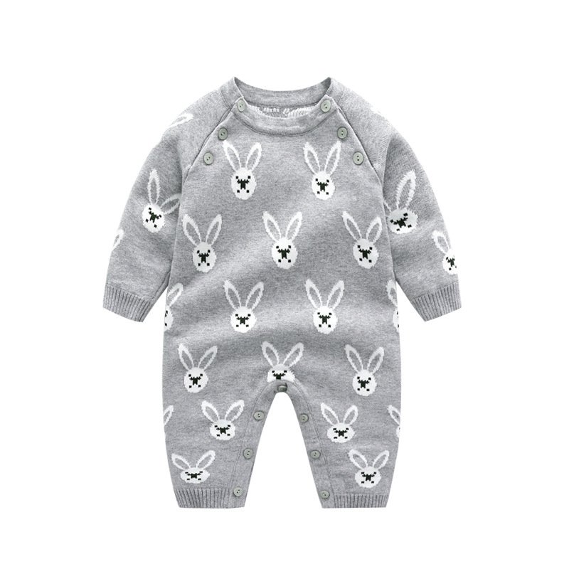 Kids Baby Boys Girls Casual Cute Cartoon Print Long Sleeve Knit Romper