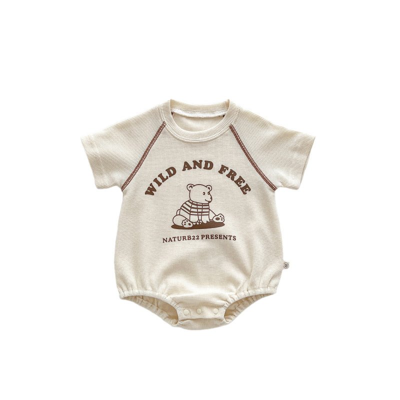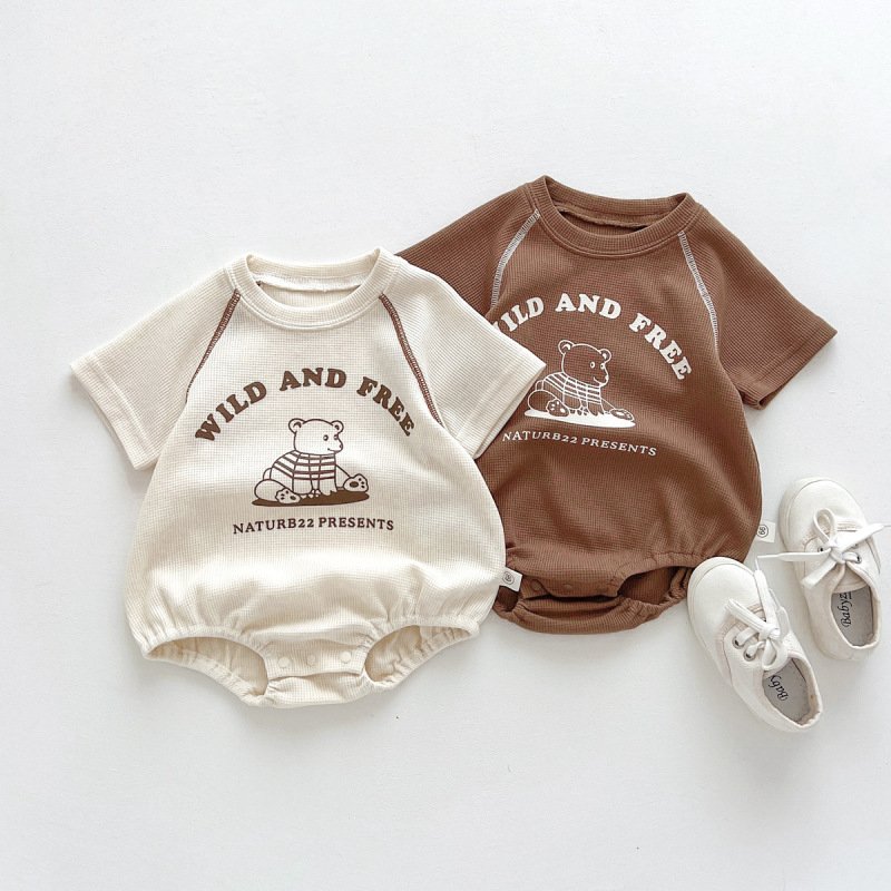 Kids Baby Boys Girls Casual Cute Cartoon Print Short Sleeve Round Neck Romper
