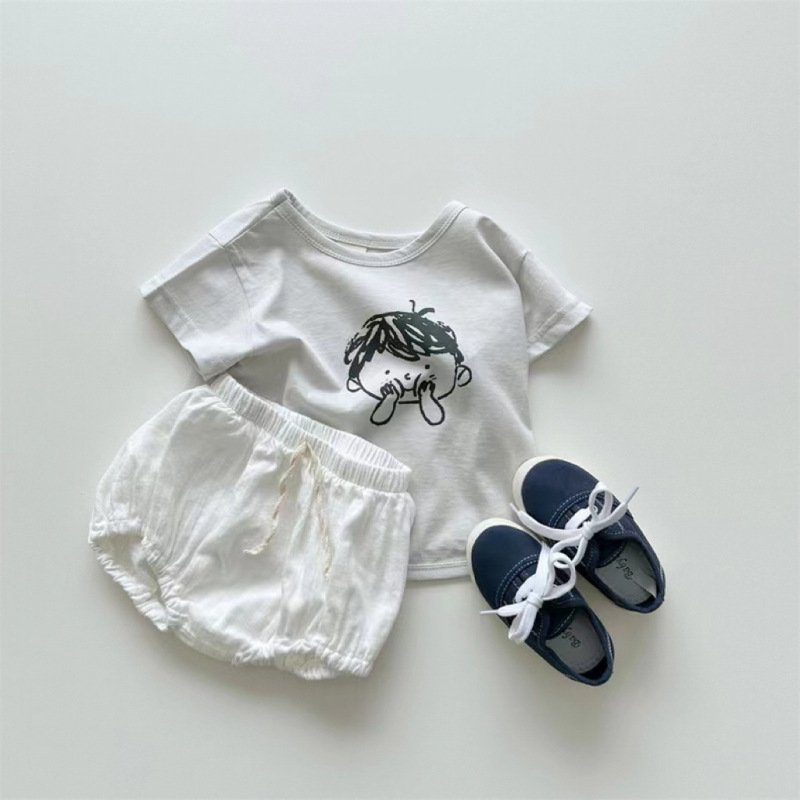Kids Baby Boys Girls Casual Cute Cartoon Print Short Sleeve Round Neck T-Shirt Shorts Set