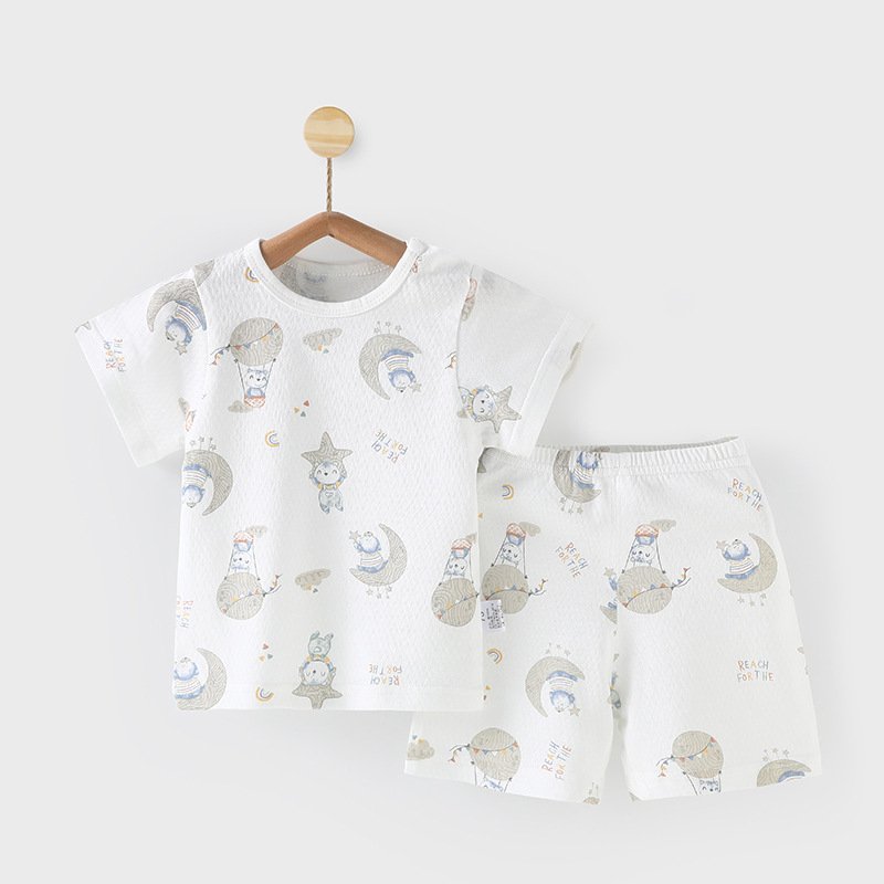 Kids Baby Boys Girls Casual Cute Cartoon Print Short Sleeve T-Shirt Shorts Set