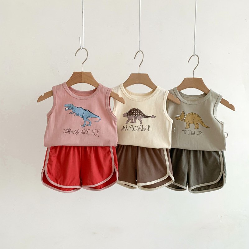 Kids Baby Boys Girls Casual Cute Cartoon Tank Top Shorts Set