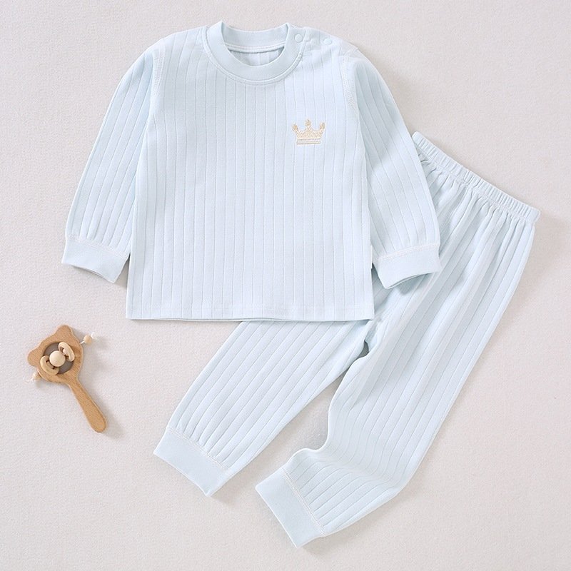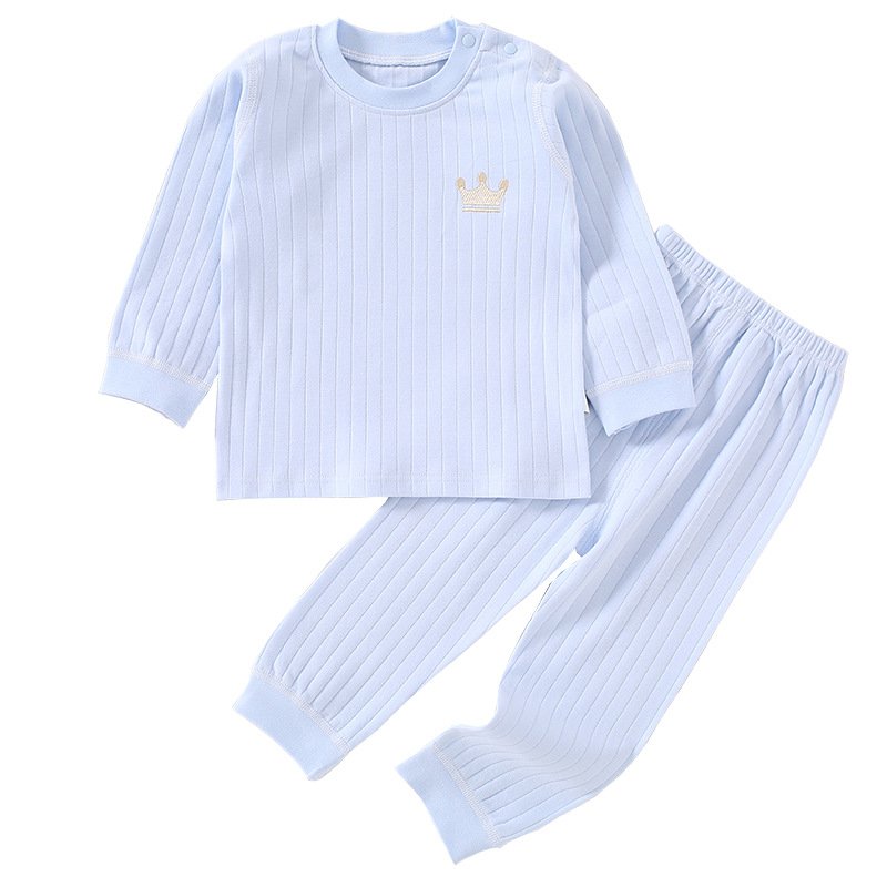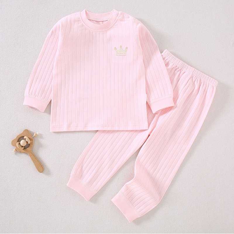 Kids Baby Boys Girls Casual Cute Crown Stripe Long Sleeve Top Trousers Set
