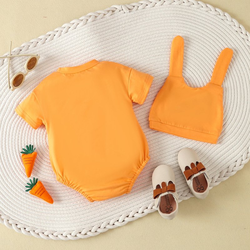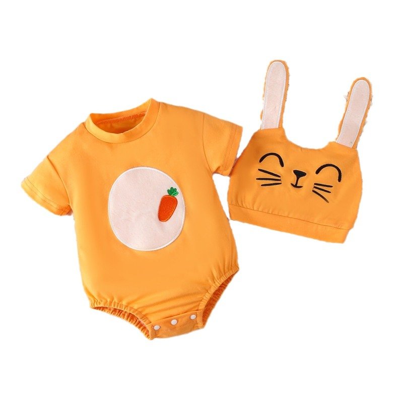 Kids Baby Boys Girls Casual Cute Easter Cartoon Pattern Short Sleeve Round Neck Romper