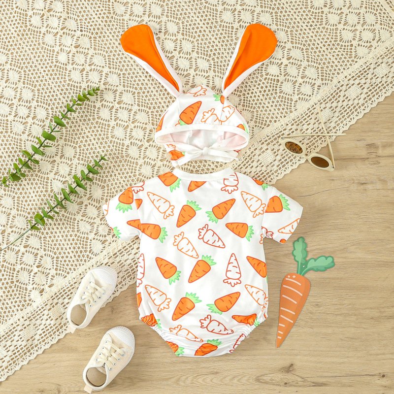 Kids Baby Boys Girls Casual Cute Easter Cartoon Print Short Sleeve Round Neck Romper
