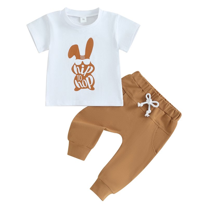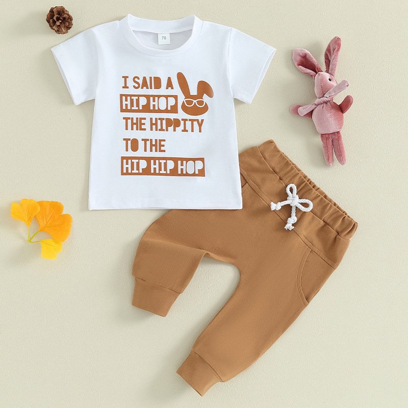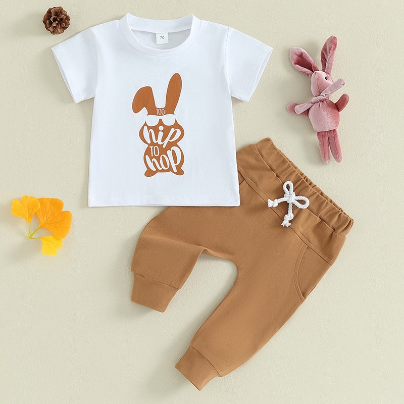 Kids Baby Boys Girls Casual Cute Easter Cartoon Rabbit Print Short Sleeve Round Neck T-Shirt Trousers Set