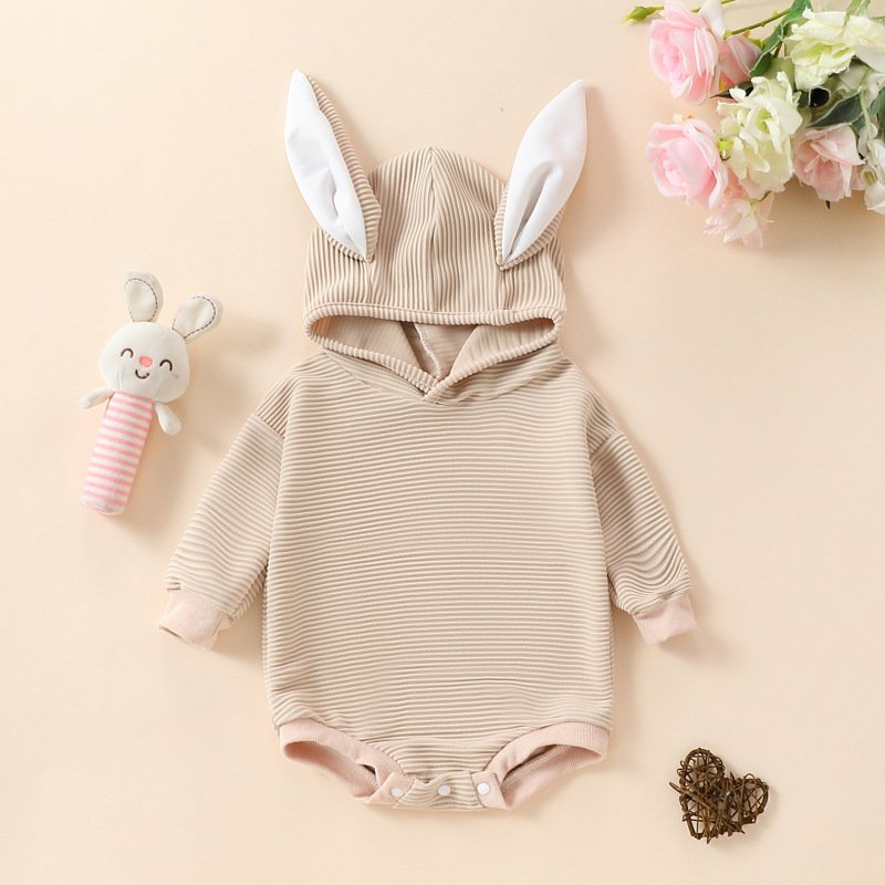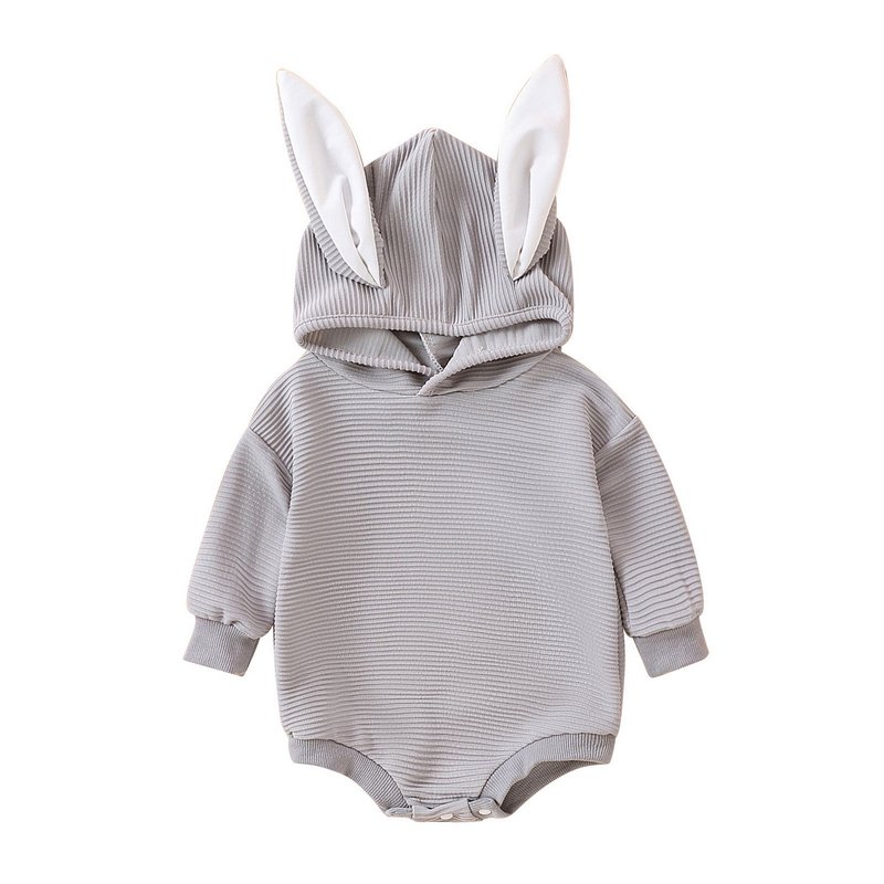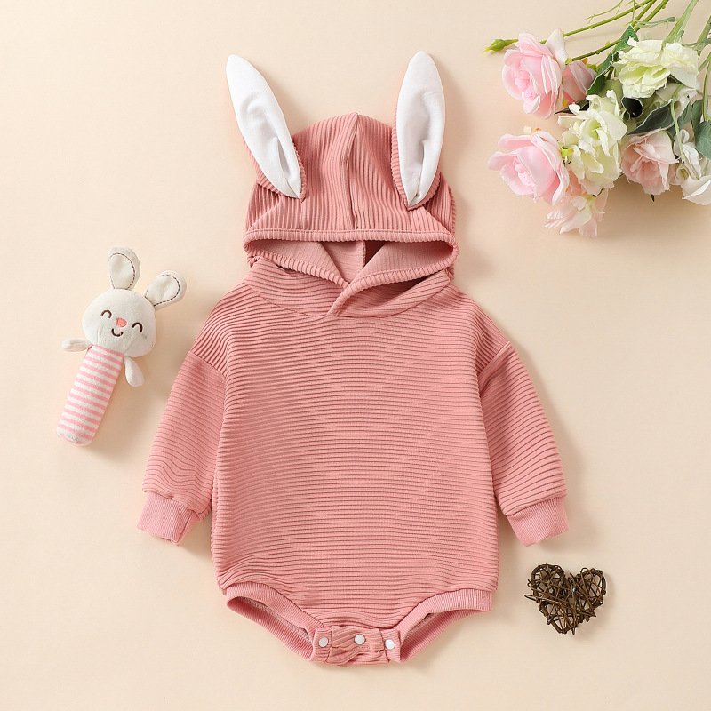 Kids Baby Boys Girls Casual Cute Easter Rabbit Ears Solid Color Long Sleeve Hooded Romper
