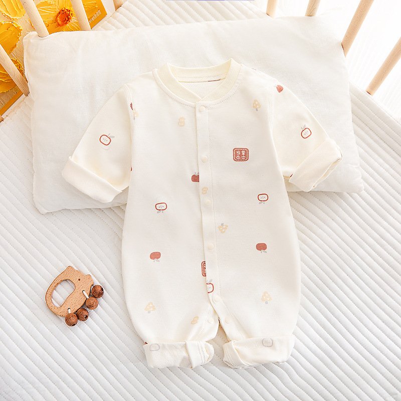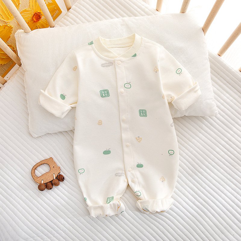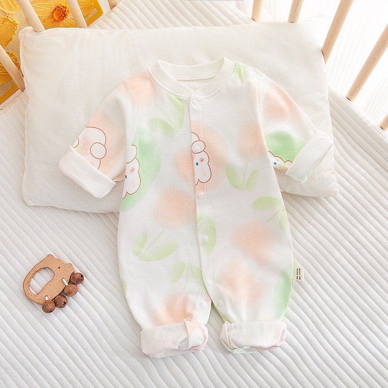 Kids Baby Boys Girls Casual Cute Floral Cartoon Pattern Long Sleeve Round Neck Bodysuit