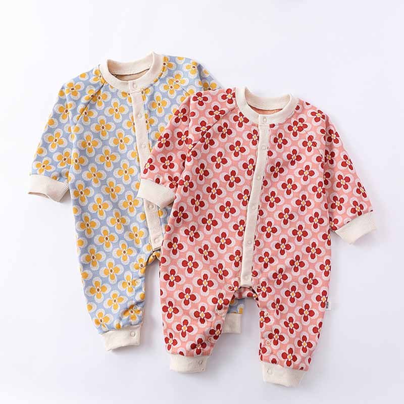 Kids Baby Boys Girls Casual Cute Flower Print Long Sleeve Romper