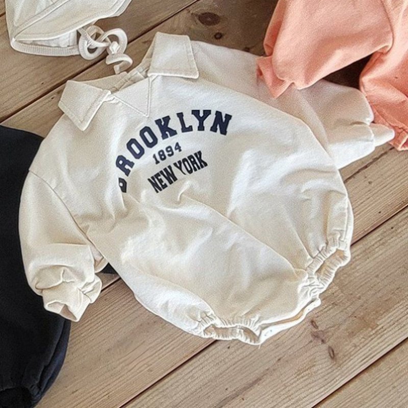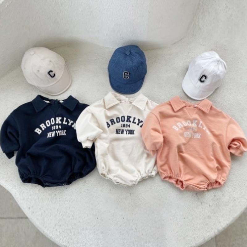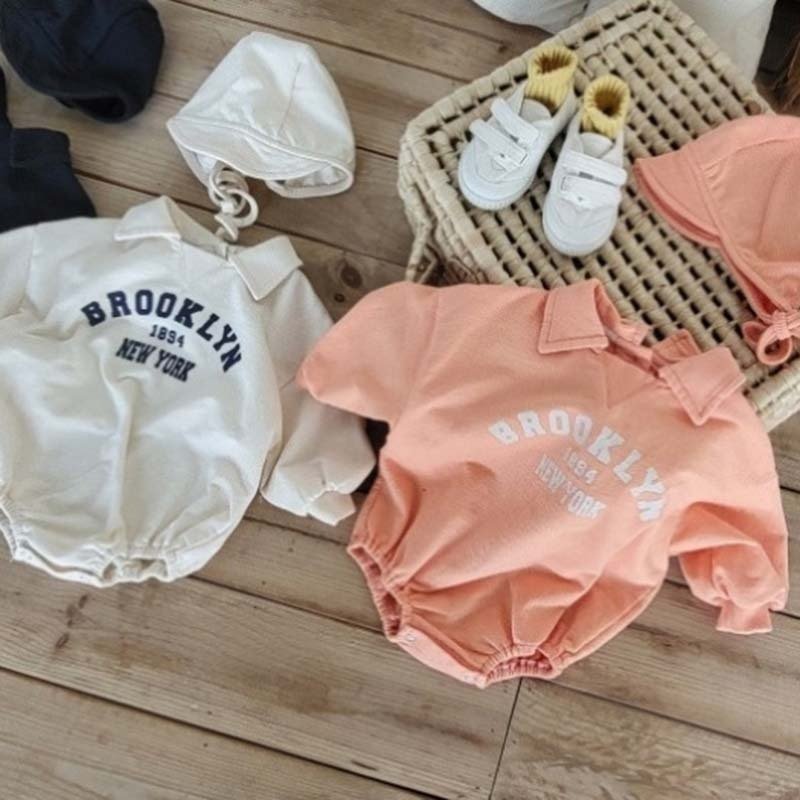 Kids Baby Boys Girls Casual Cute Letters Print Long Sleeve Lapel Romper