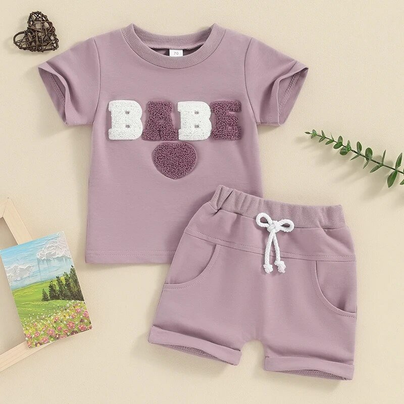 Kids Baby Boys Girls Casual Cute Letters Short Sleeve T-Shirt Shorts Set