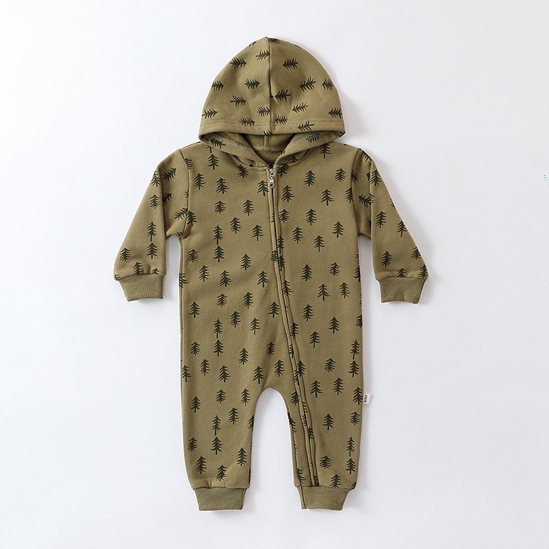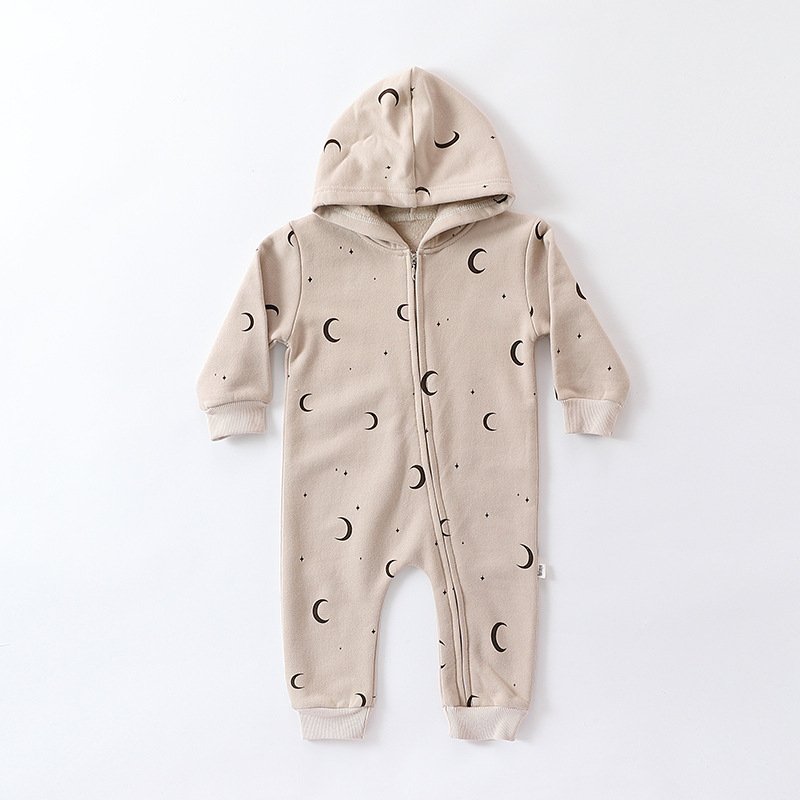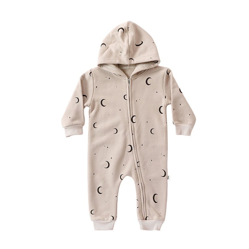 Kids Baby Boys Girls Casual Cute Moon Pattern Long Sleeve Round Neck Hooded Bodysuit