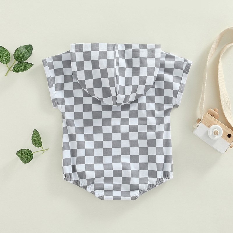 Kids Baby Boys Girls Casual Cute Plaid Print Short Sleeve Hooded Romper