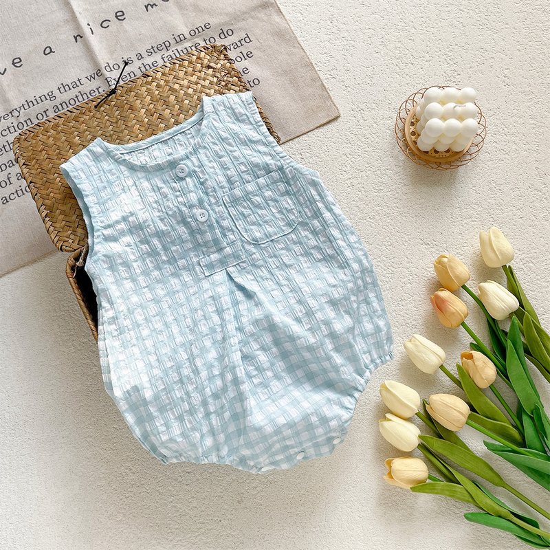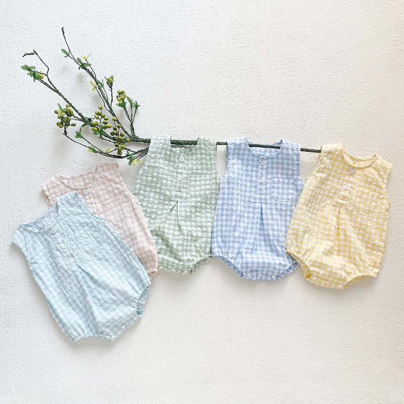 Kids Baby Boys Girls Casual Cute Playd Print Sleeveless Romper