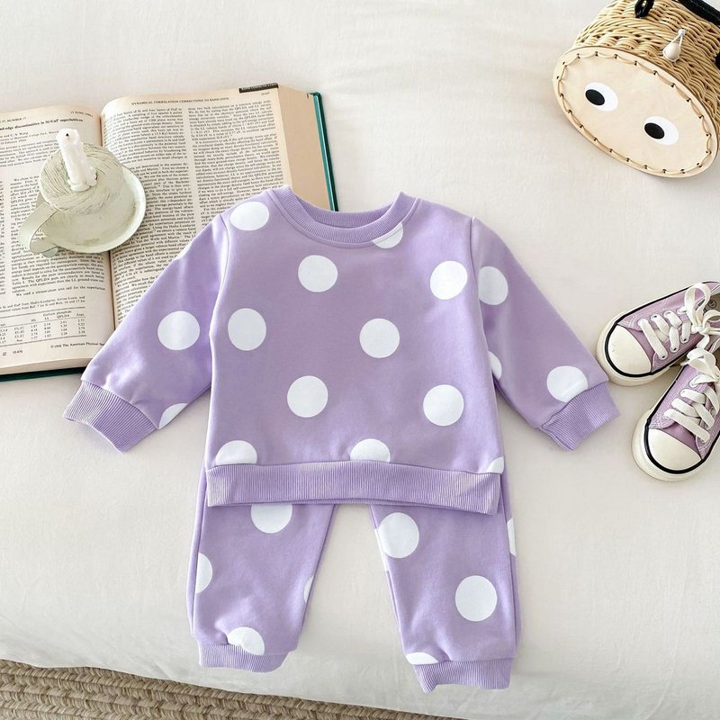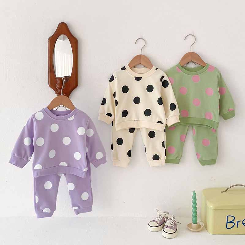 Kids Baby Boys Girls Casual Cute Polka Dot Print Long Sleeve Sweatshirts Pants Sets