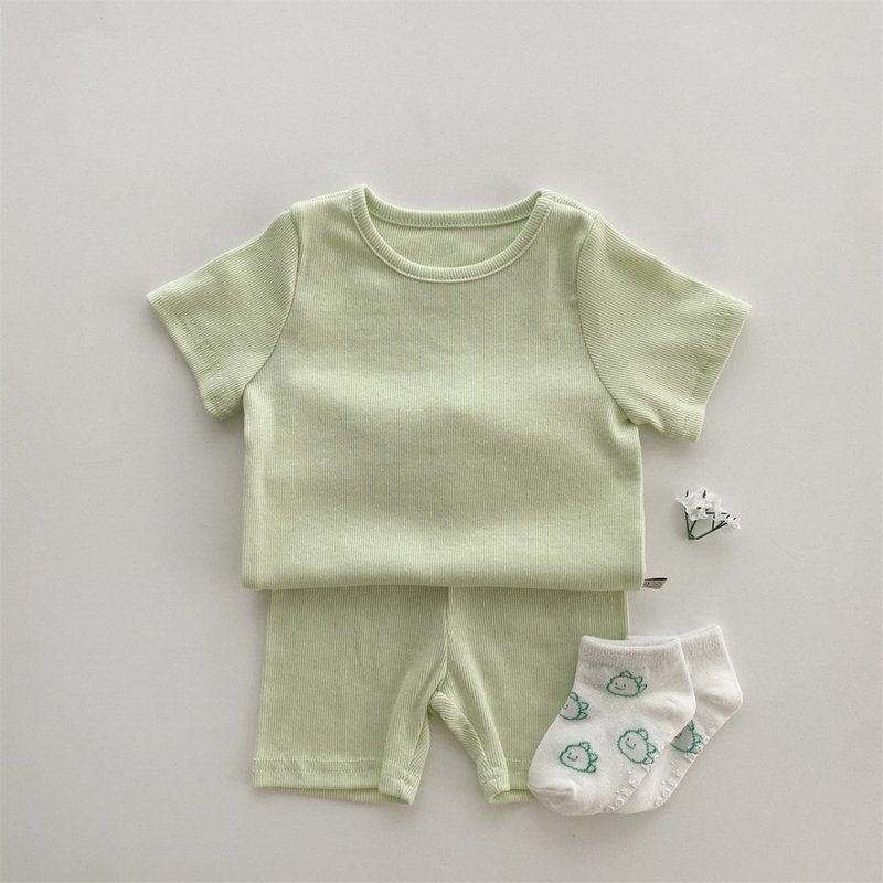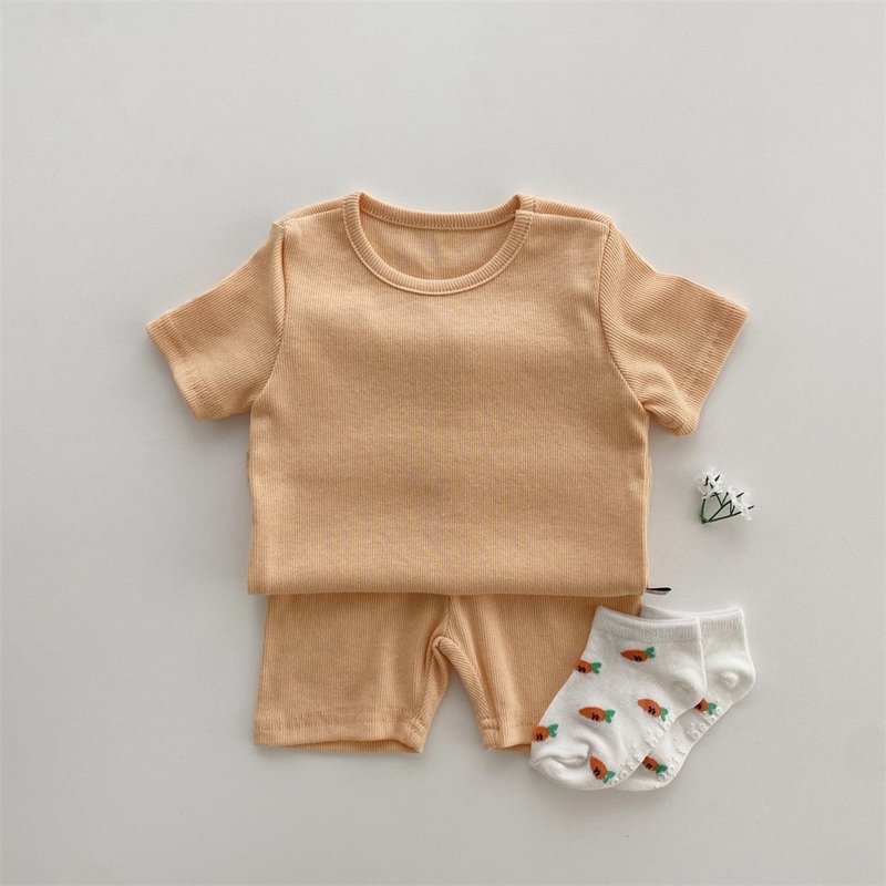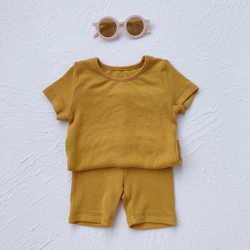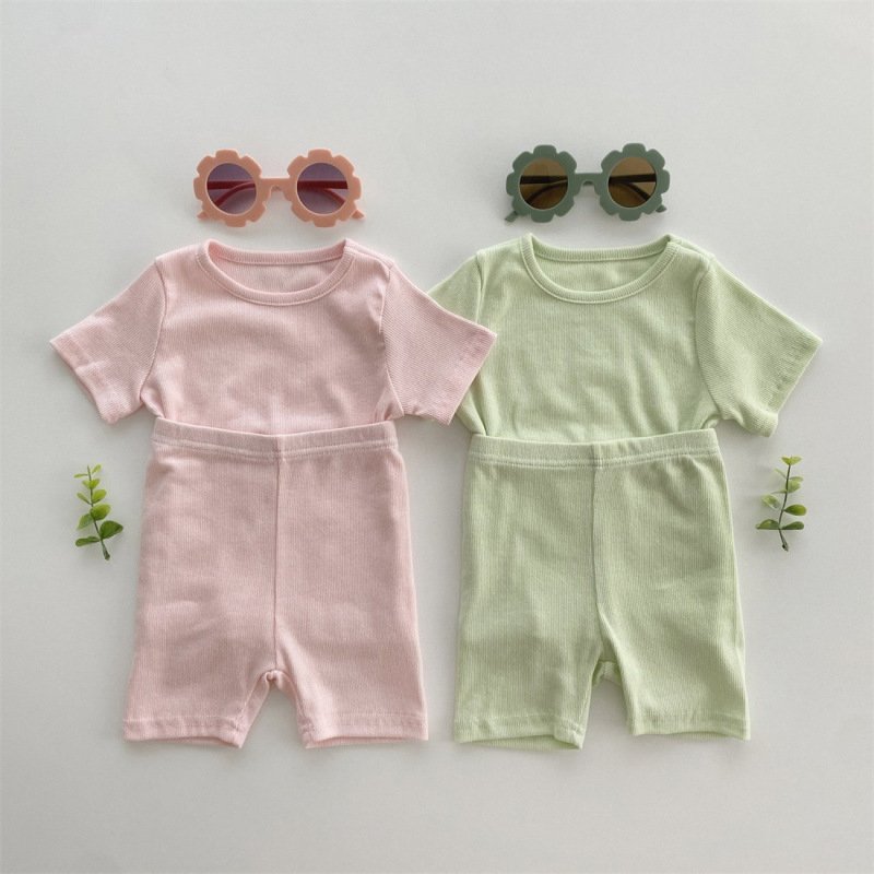 Kids Baby Boys Girls Casual Cute Rib-Knit Short Sleeve T-Shirt Shorts Set