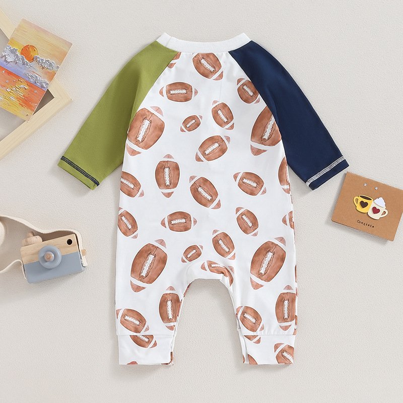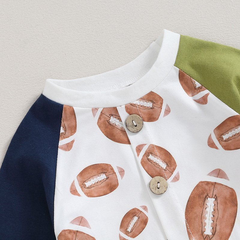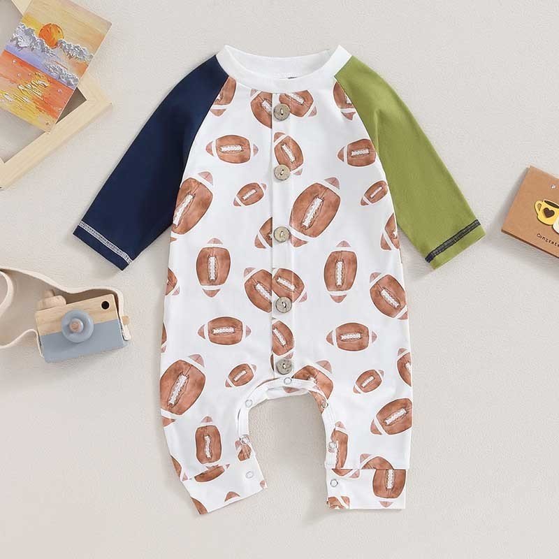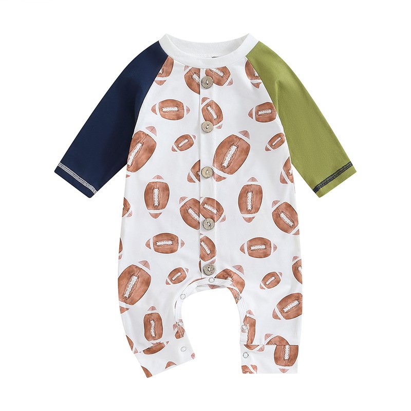 Kids Baby Boys Girls Casual Cute Rugby Print Long Sleeve Round Neck Bodysuit