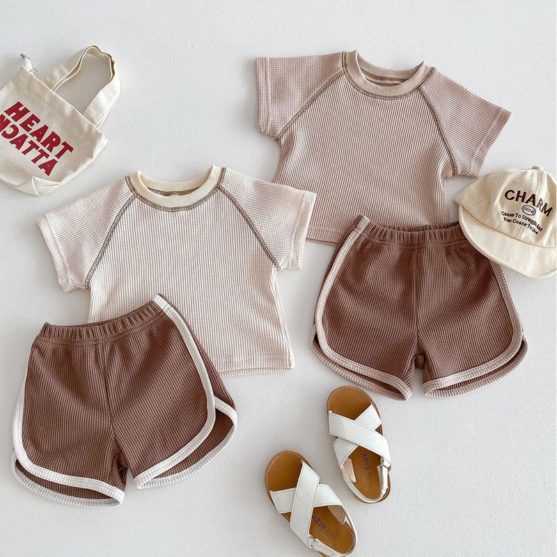 Kids Baby Boys Girls Casual Cute Short Sleeve Top Shorts Sets