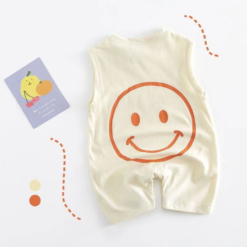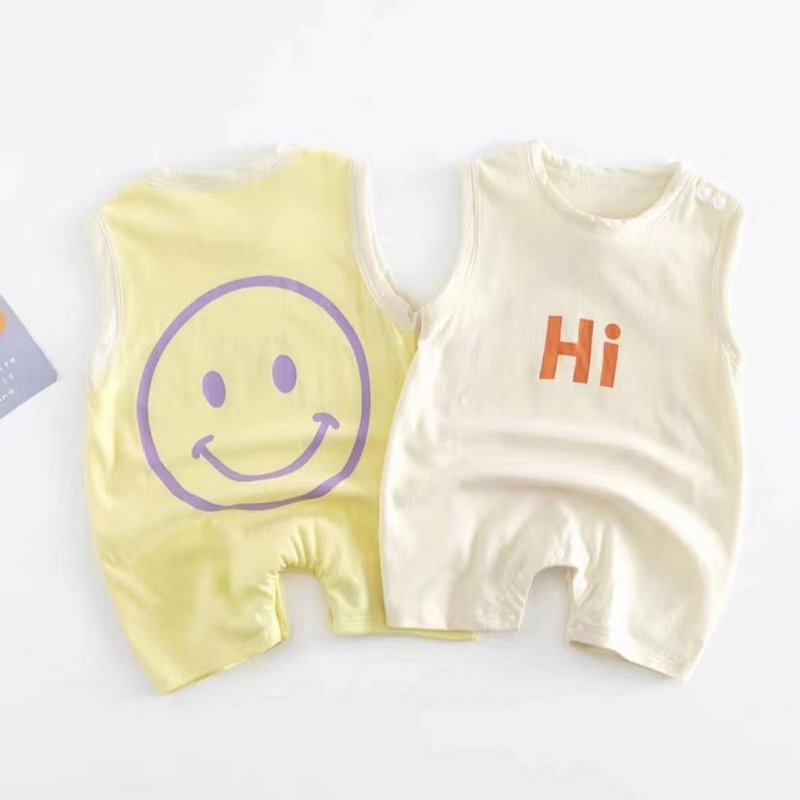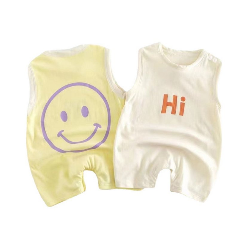 Kids Baby Boys Girls Casual Cute Smiley Letters Print Sleeveless Romper