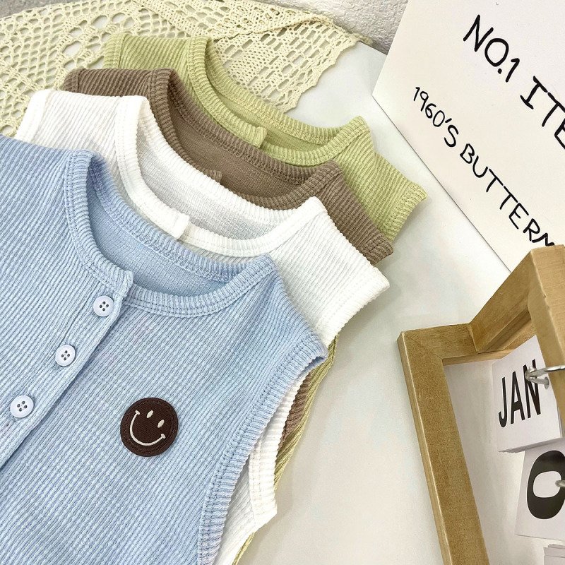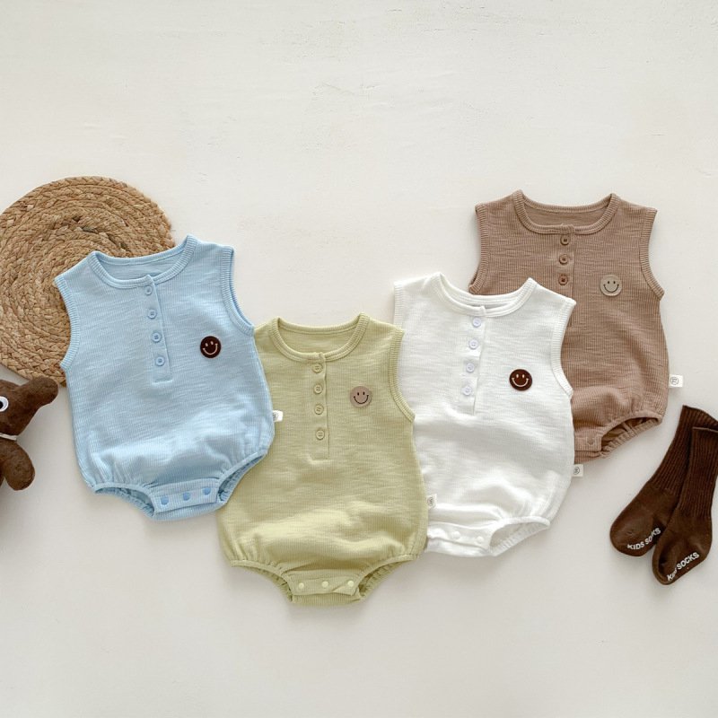 Kids Baby Boys Girls Casual Cute Smiley Print Sleeveless Round Neck Romper