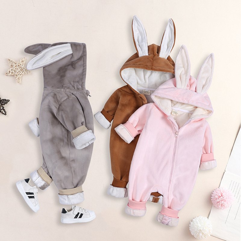 Kids Baby Boys Girls Casual Cute Solid Color Plush Long Sleeve Romper