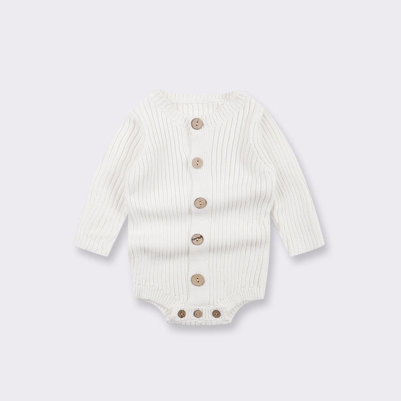 Kids Baby Boys Girls Casual Cute Solid Color Rib-Knit Long Sleeve Knit Romper