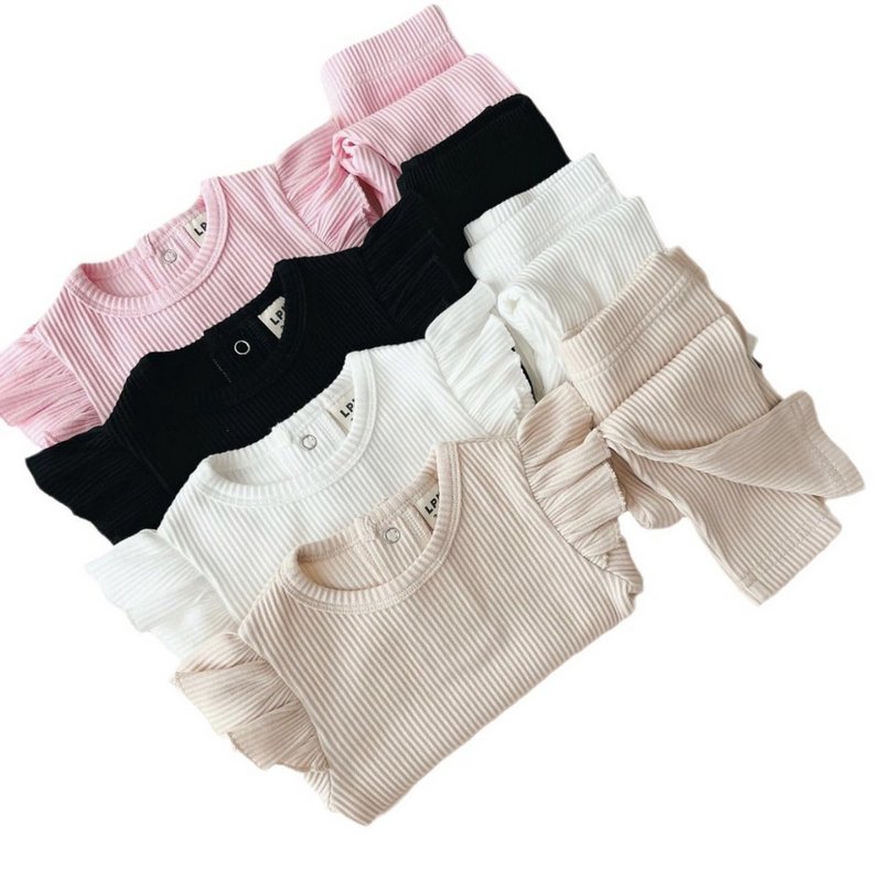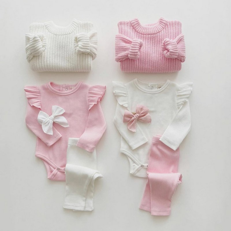 Kids Baby Boys Girls Casual Cute Solid Color Rib-Knit Long Sleeve Romper Trousers Set