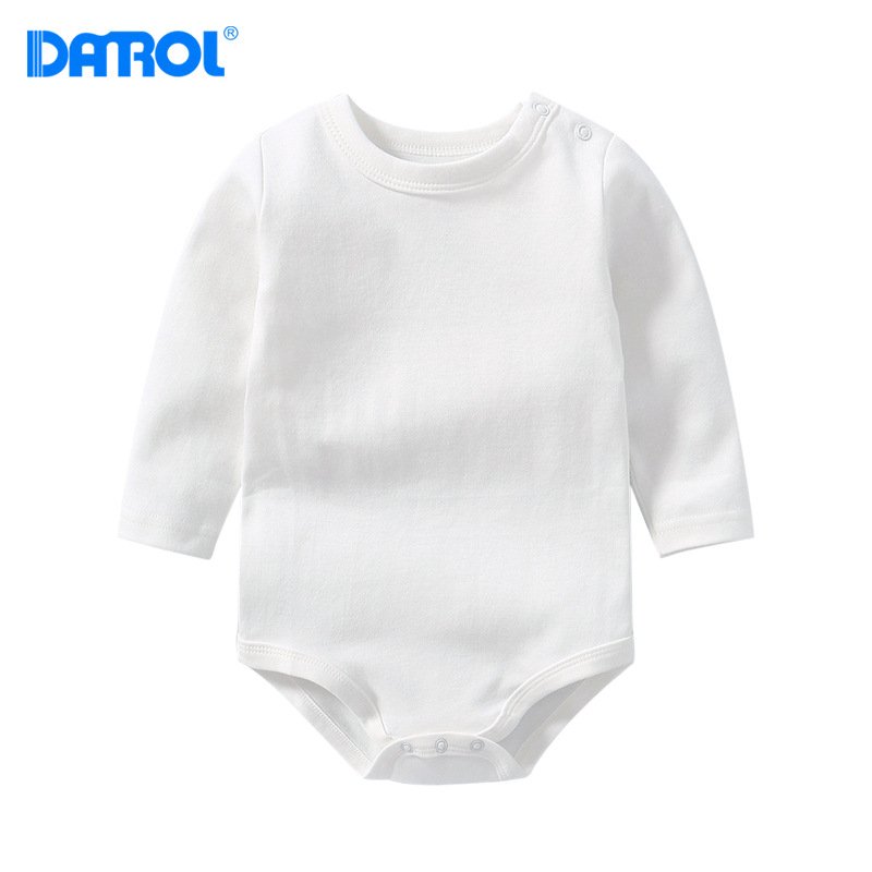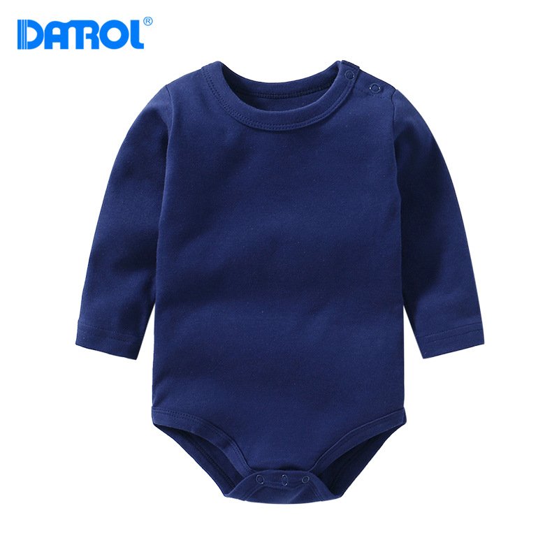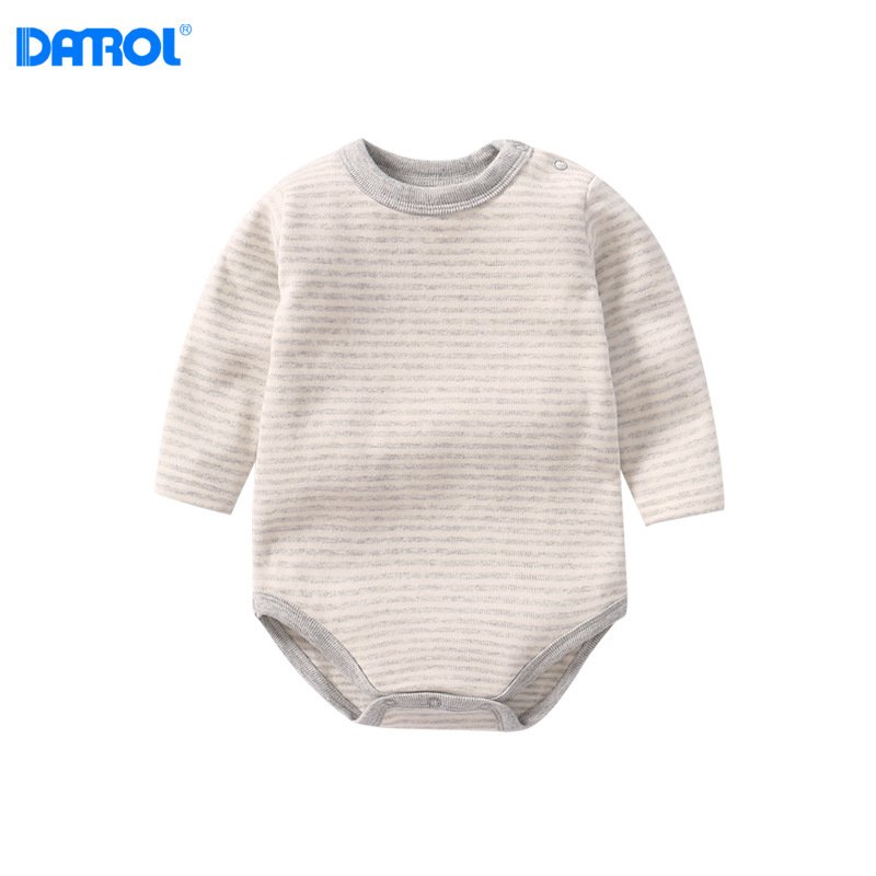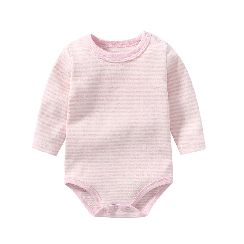 Kids Baby Boys Girls Casual Cute Solid Color Stripe Long Sleeve Round Neck Romper