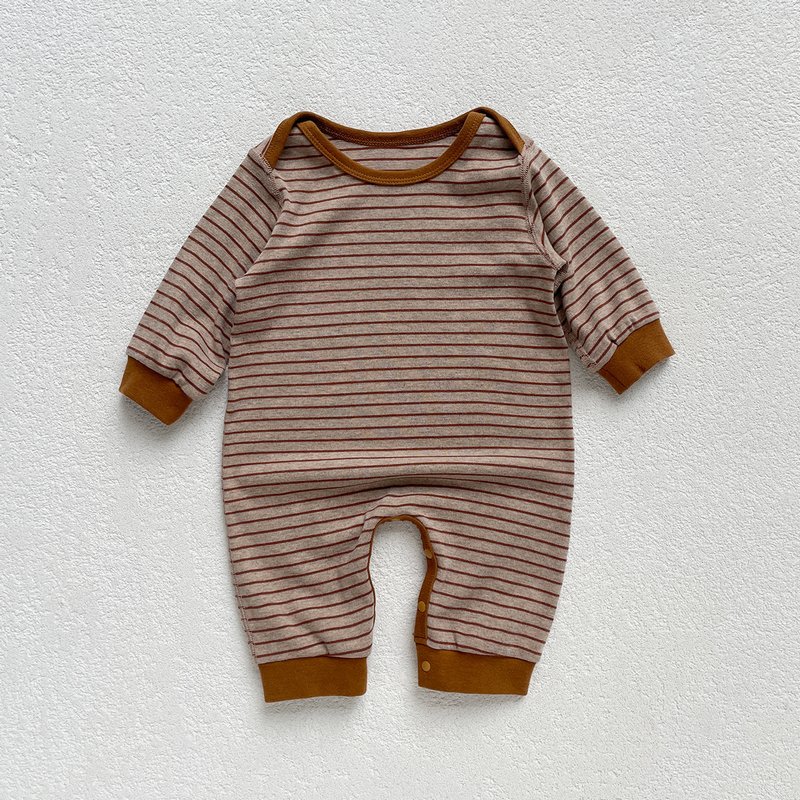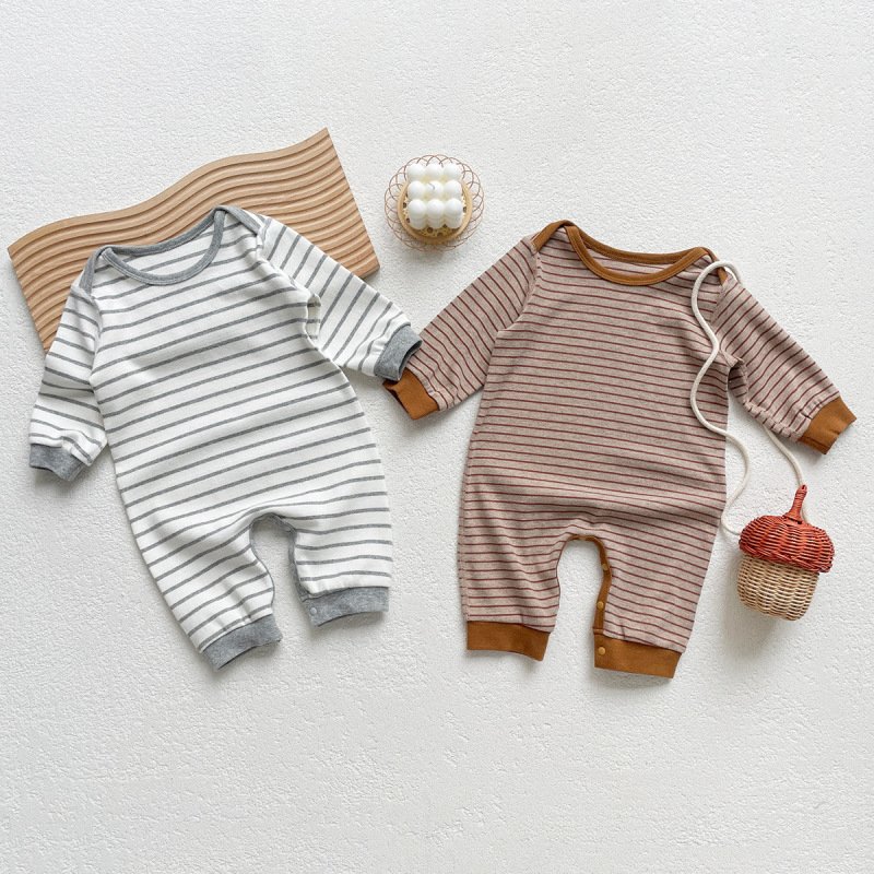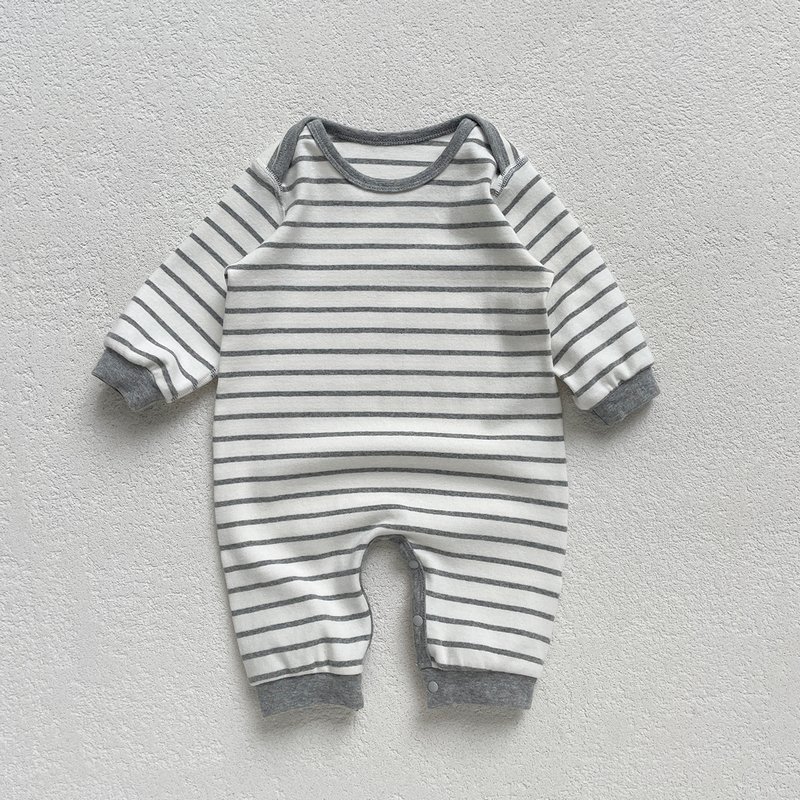 Kids Baby Boys Girls Casual Cute Stripe Print Long Sleeve Round Neck Romper