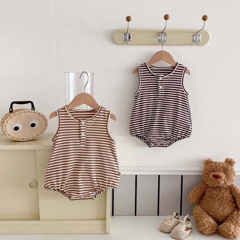 Kids Baby Boys Girls Casual Cute Stripe Romper